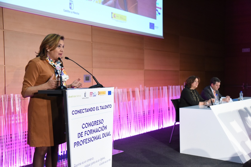 El Gobierno de Castilla-La Mancha va a seguir apostando por potenciar la Formación Profesional Dual como puerta de entrada al mercado laboral a través de una formación acreditable, desde los certificados de profesionalidad, que prepara al alumnado para las exigencias reales del mercado de trabajo dentro de la Formación Profesional. Así lo han señalado las consejeras de Educación, Cultura y Deportes, Rosa Ana Rodríguez, y de Economía, Empresas y Empleo, Patricia Franco, en la apertura del Congreso de Formación Profesional Dual que se celebra en Toledo y que ha sido inaugurado por el presidente de la región, Emiliano García-Page.