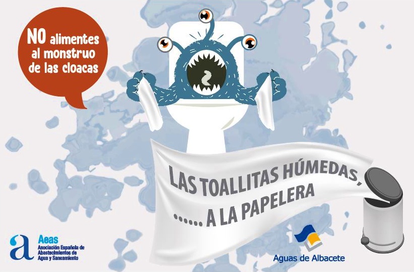 Para ello, Aguas de Albacete se ha unido a la campaña de sensibilización ‘No alimentes al monstruo de las cloacas’ que promueve la Asociación Española de Abastecimientos de agua y Saneamiento (AEAS) sobre los productos no aptos para desechar por el W.C. y a la cual se han adherido un centenar de empresas del sector.