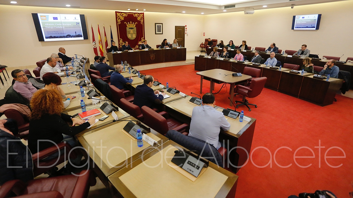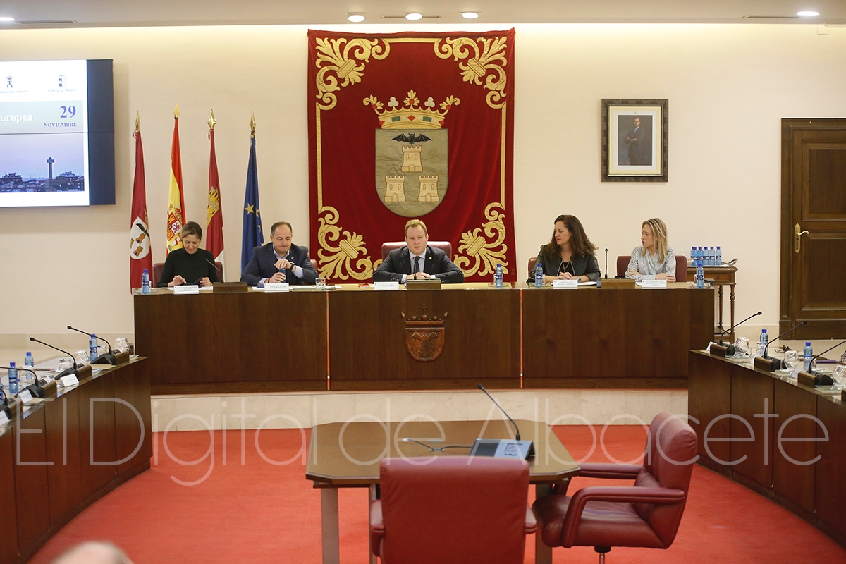 El Ayuntamiento acogía este viernes la jornada ‘Albacete, Ciudad Europea’. Un proyecto en el que han participado el alcalde de la capital, Vicente Casañ; el vicealcalde, Emilio Sáez; la concejal de Asuntos Europeos; Maite García; la directora general de Asuntos Europeos, Virginia Marco; y la europarlamentaria y vicepresidenta de la Comisión de peticiones al Partamento Europeo, Cristina Maestre.