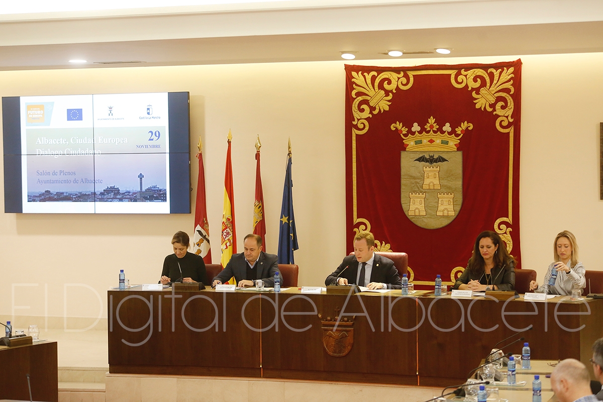 El Salón de Plenos del Ayuntamiento de Albacete era el escenario en el que se llevaba a cabo este encuentro que finalizaba con un diálogo ciudadano. De este modo, la directora general de Asuntos Europeos, Virginia Marco, destacaba que es fundamental “establecer y crear diálogos con las entidades más cercanas a la ciudadanía y escuchar sus peticiones y reivindicaciones”. Algo que se debe hacer “desde las entidades locales”, destacando que “debemos trabajar por el crecimiento económico de nuestras ciudades de un modo sostenible”, también desde Europa.