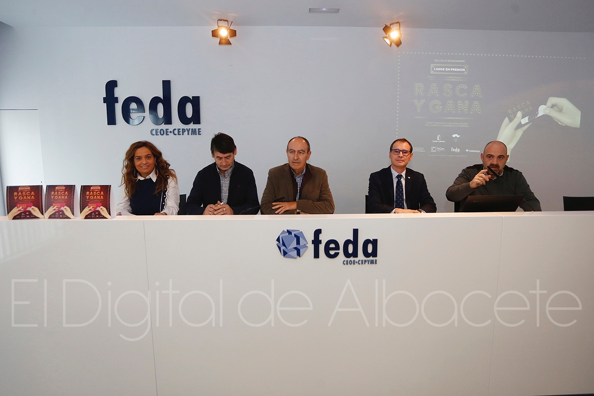 Así, la sede de FEDA acogía la presentación de esta campaña, en la que el presidente de la Patronal, Luis Ramírez, explicaba que “lo que pretendemos es potenciar y fidelizar las compras en el comercio tradicional”. Una iniciativa que se extenderá desde el 5 al 21 de diciembre. Así, destacaba que se dará a los clientes “una tarjeta con un clásico rasca y gana premios directos de 40 euros que se podrán canjear en el propio comercio en el que ha resultado agraciado el consumidor”. En total, se repartirán 1.000 euros en premios entre los establecimientos que participan en Albacete, Almansa, Caudete, Hellín, La Roda y Villarrobledo. Así, apuntaba que participarán en esta nueva iniciativa cerca de «300 establecimientos asociados de toda la provincia».