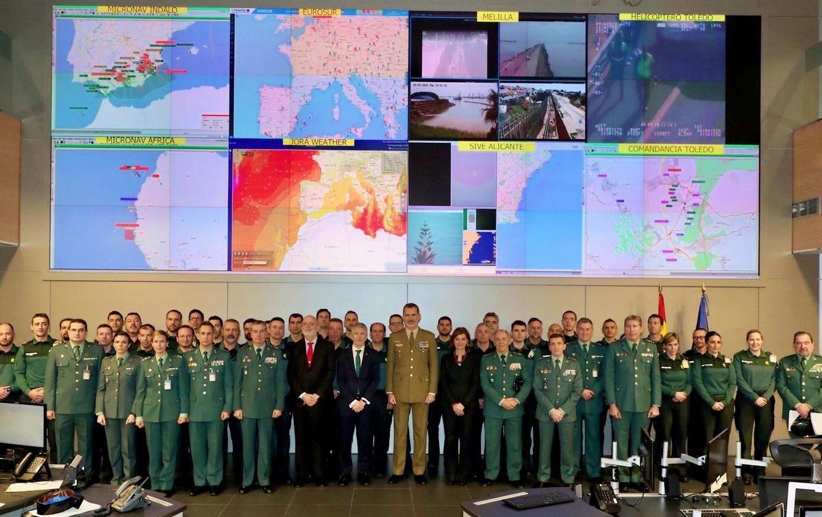 Desde la sala, presidida por un grupo de pantallas, se coordina y se hace el seguimiento de toda la actividad de la Guardia Civil en toda España. El centro es también punto de coordinación con otros países, entre ellos Francia y Marruecos; con instituciones como el Banco de España y con otros actores como Facebook, que comunica a la Guardia Civil las actividades sospechosas.