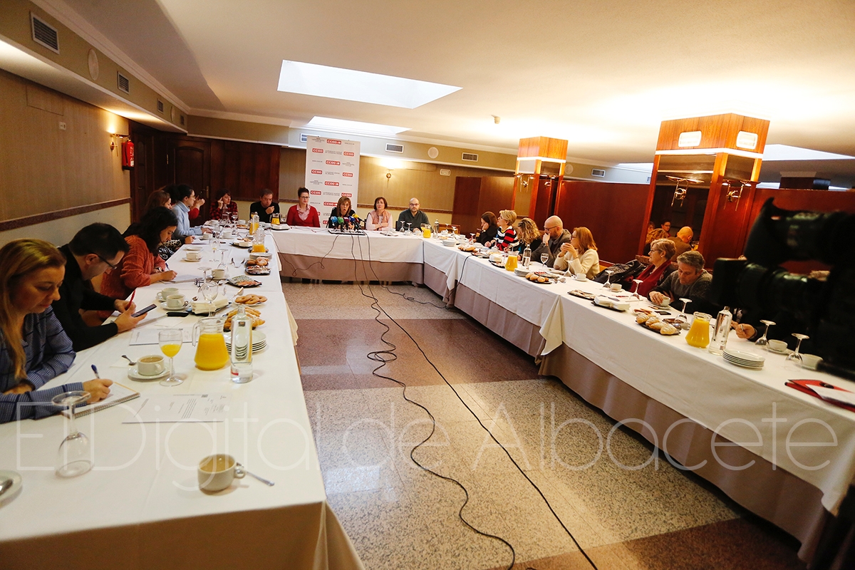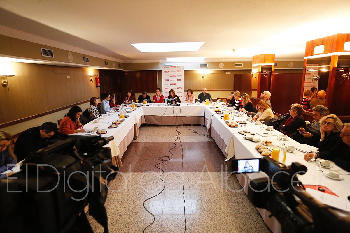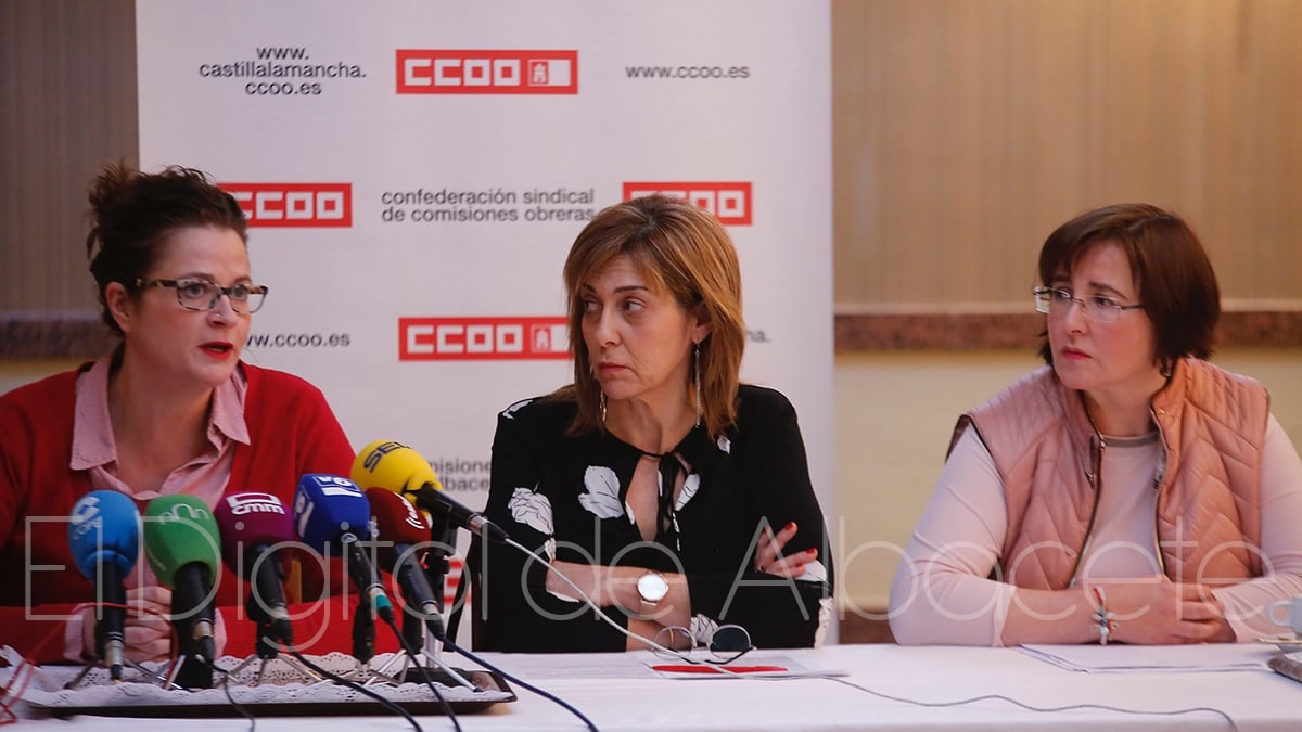 La secretaria general de Comisiones Obreras (CCOO) de Albacete, Carmen Juste acompañada de la Ejecutiva Provincial del sindicato hacía balance del 2019, así como daba las pinceladas de las previsiones y retos de cara a este 2020.