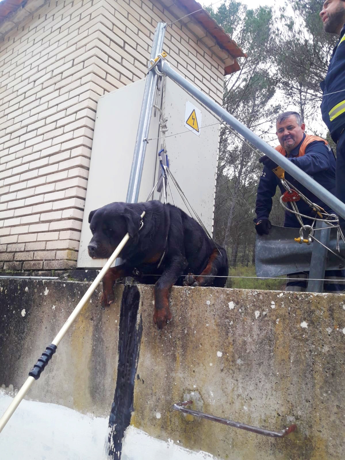 Tras acceder al animal y poder asegurarlo mediante cuerdas, poleas y mosquetones, pudo ser izado fuera del canal y librado de lo que podría haber sido un lento y agónico final para el perro de no haber sido rescatado y haber continuado en el trasvase.