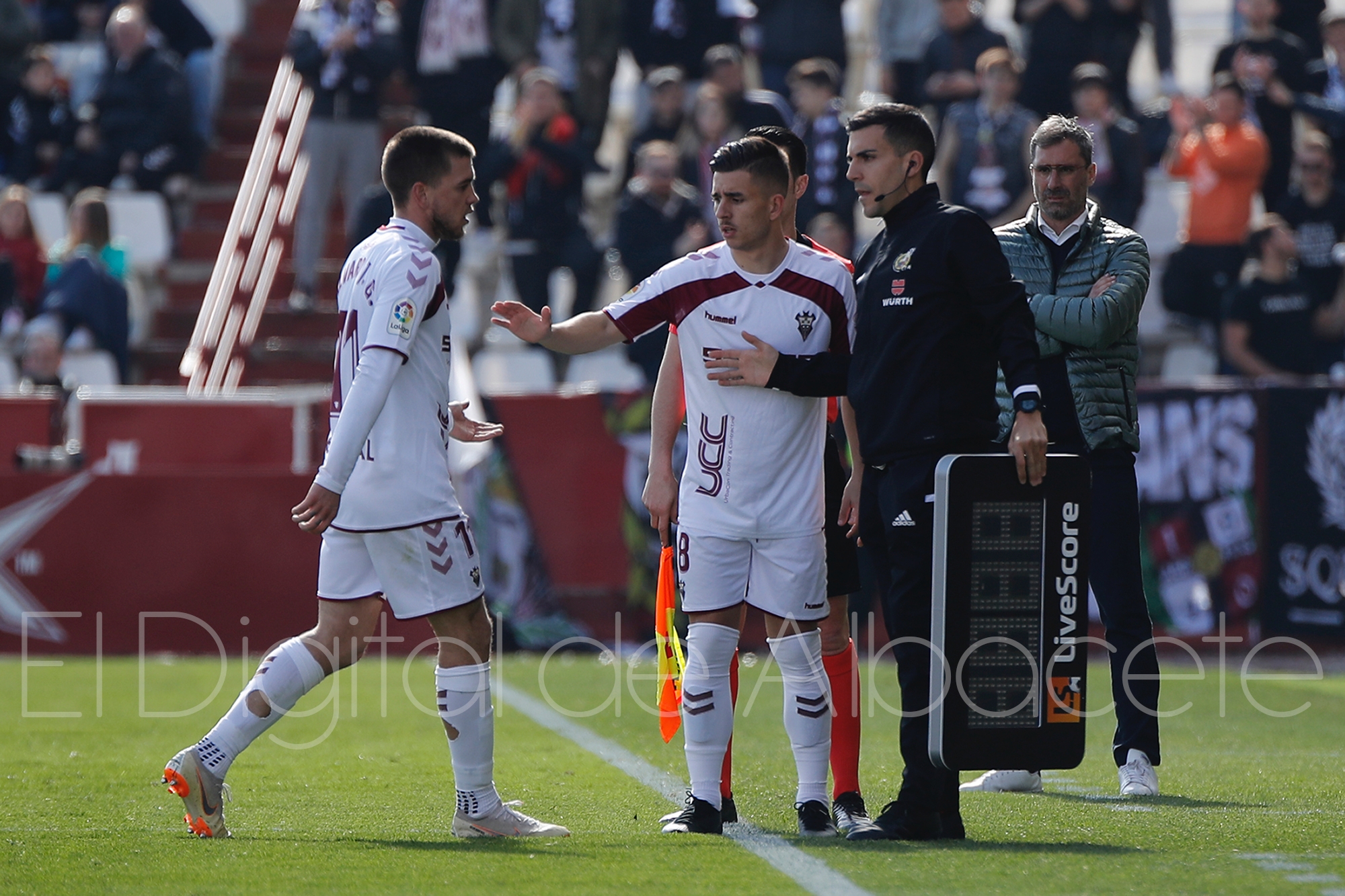 Albacete Balompié: Fuster por Álvaro Jiménez (min 35), Azamoum por Silvestre (min 52) y Caballo por Fran García (min 70).