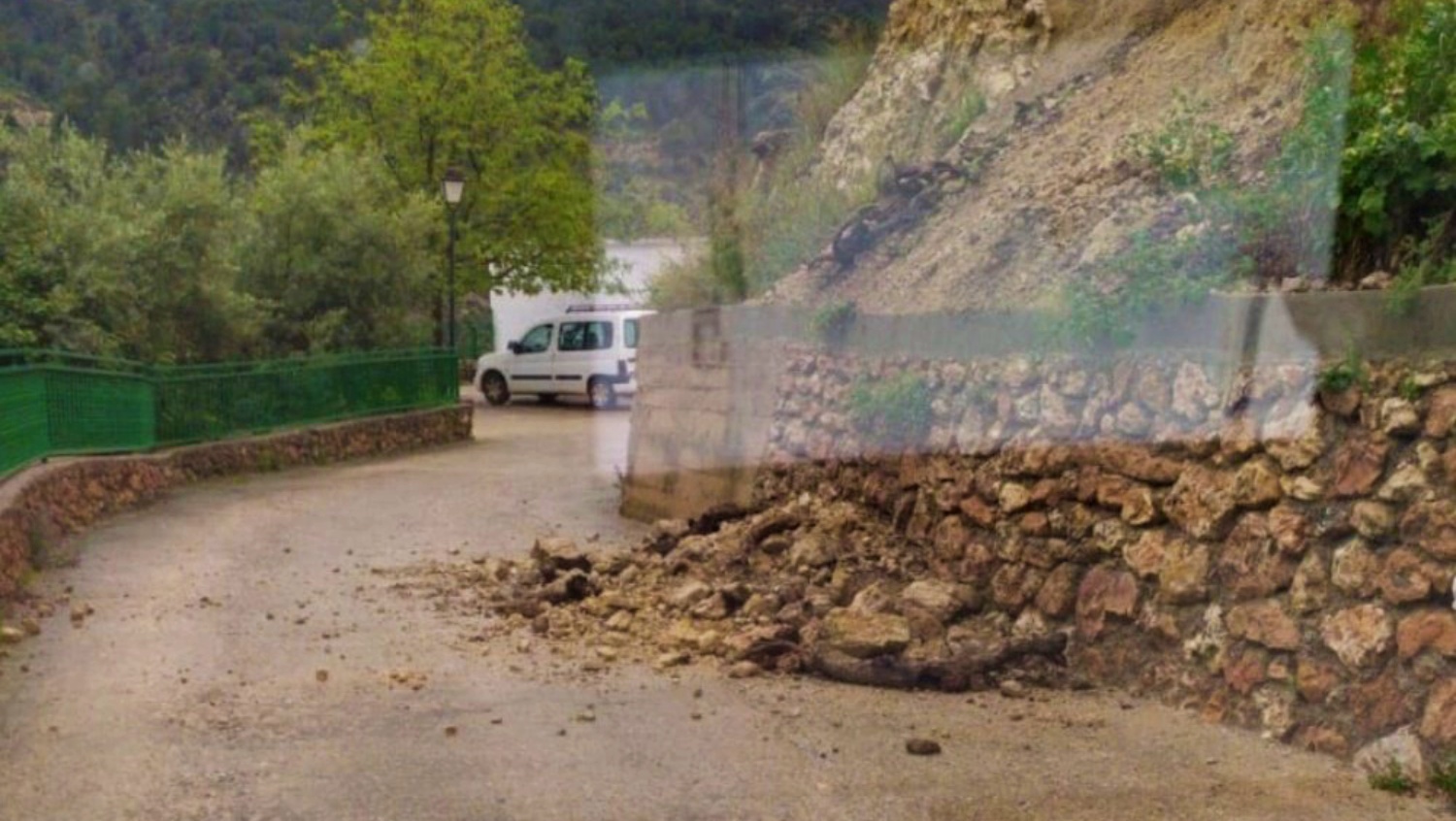 Los episodios tormentosos vividos en la localidad en las últimas horas han dejado como consecuencia el desprendimiento de algunas rocas y tierra en la CM-3203.