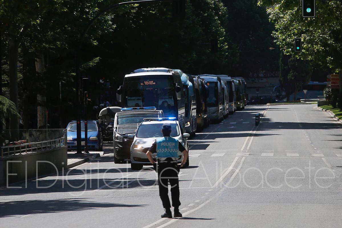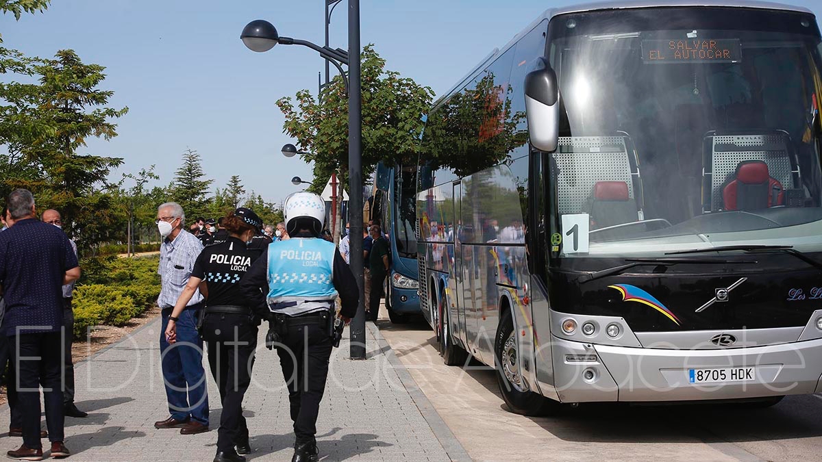 Tras la lectura del manifiesto los participantes recorrían en autobús y cumpliendo las medidas de seguridad la Avenida de la Mancha, Avenida de España, Plaza Gabriel Lodares, las calles Tesifonte Gallego y Marqués de Molins, Paseo de la Libertad y Avenida de la Estación, para finalizar en Vialia.