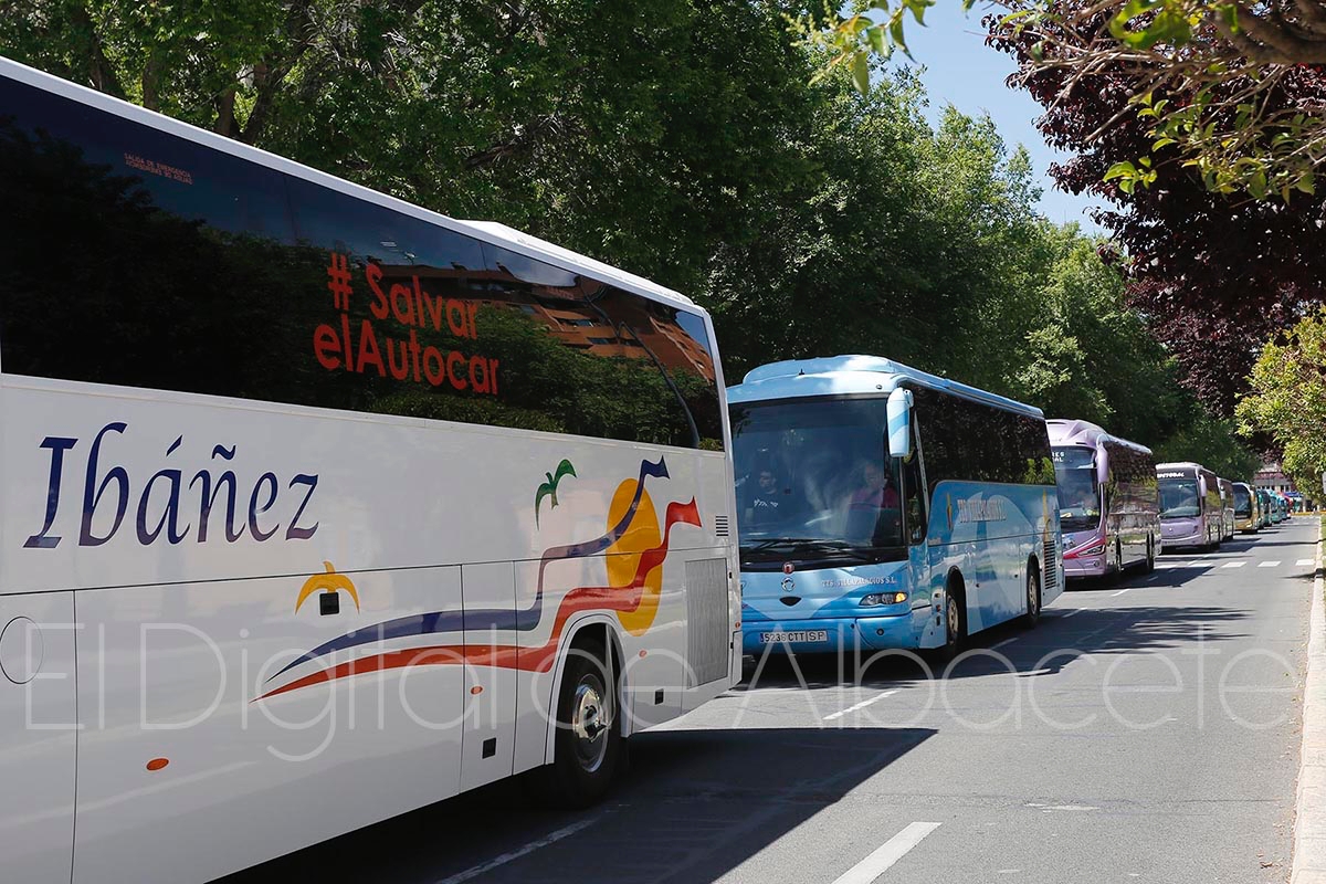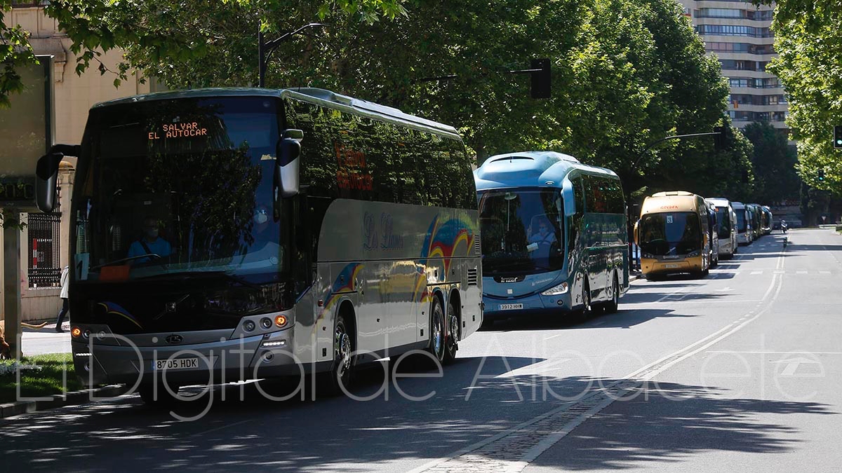 La Asociación Provincial de Empresarios de Transportes de Servicios Discrecionales de Viajeros convocaba este miércoles, 10 de junio, una manifestación en Albacete, sumándose así a la convocatoria nacional hecha por la Asociación Dierbus.