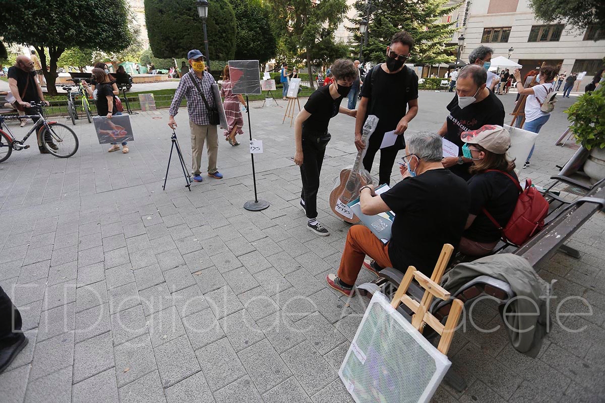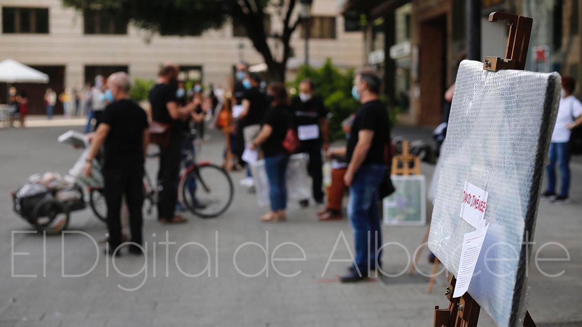 Así, para garantizar las medidas de seguridad los artistas participantes han estado separados entre sí por una distancia “de entre 8 y 10 metros”, puntualizaba, y además han ido provistos de mascarillas. De este modo, recordaba Jiménez que la concentración viene motivada porque tras el cierre de las salas de exposiciones del Museo Municipal “los artistas estamos en la calle” y por unas “palabras totalmente desafortunadas del alcalde de Albacete, Vicente Casañ”, señalaba.