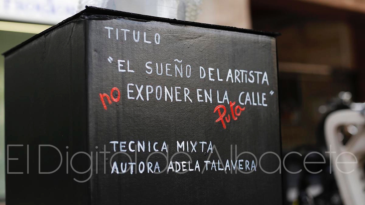Los artistas de Albacete realizaban una gran exposición en la calle, bautizada ‘Arte en la (puta) calle’, como acto de protesta por la desaparición de las salas de exposiciones del Museo Municipal de la capital convertidas ahora en las oficinas del Registro Municipal. La cita con pintores, fotógrafos, ceramistas, escultores, actores y escritores albaceteños ha sido este miércoles 10 de junio de 19:00 a 21:00 horas en tres puntos emblemáticos de la ciudad como son la Plaza del Altozano, la Plaza de la Constitución y el Paseo de la Libertad.