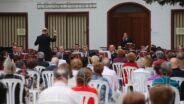 La cita con la Sinfónica de Albacete coincide con la celebración de la festividad del Corpus, este jueves, 11 de junio. De este modo, las notas musicales han inundado la explanada del colegio San Fernando y el Abelardo Sánchez se ha convertido en un teatro al aire libre.