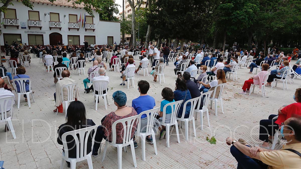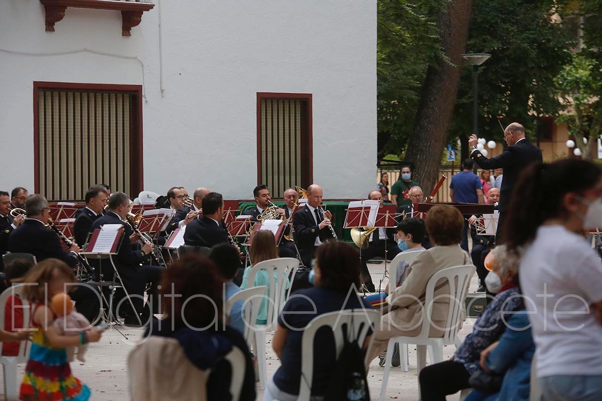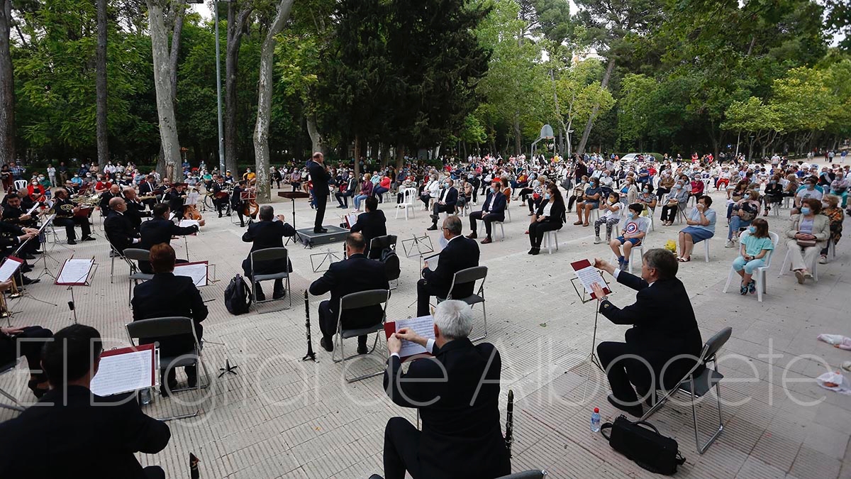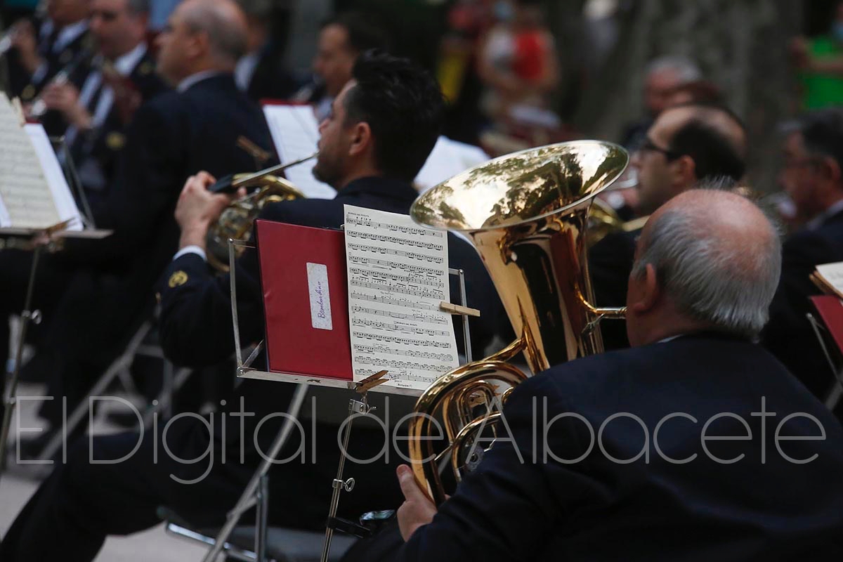 La cita con la Sinfónica de Albacete coincide con la celebración de la festividad del Corpus, este jueves, 11 de junio. De este modo, las notas musicales han inundado la explanada del colegio San Fernando y el Abelardo Sánchez se ha convertido en un teatro al aire libre.
