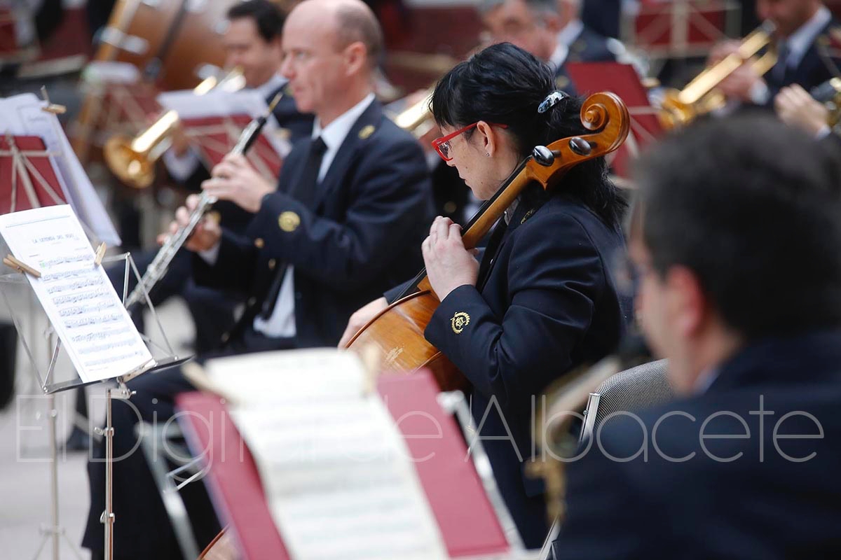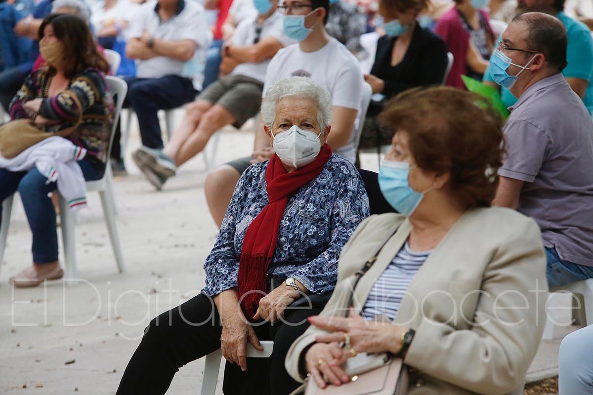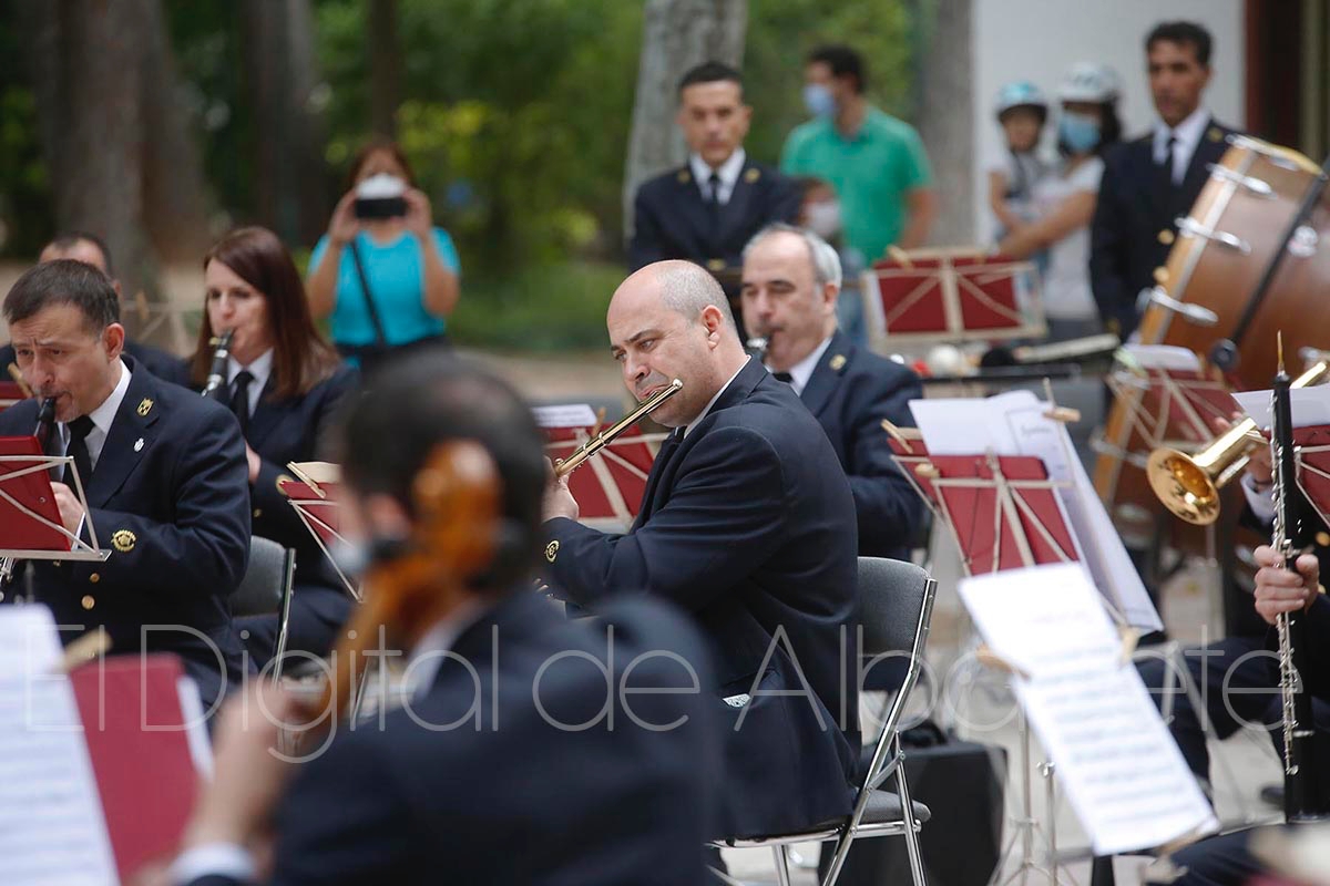 La cita con la Sinfónica de Albacete coincide con la celebración de la festividad del Corpus, este jueves, 11 de junio. De este modo, las notas musicales han inundado la explanada del colegio San Fernando y el Abelardo Sánchez se ha convertido en un teatro al aire libre.
