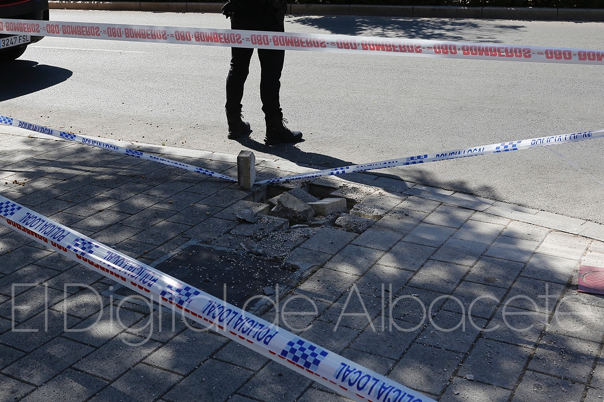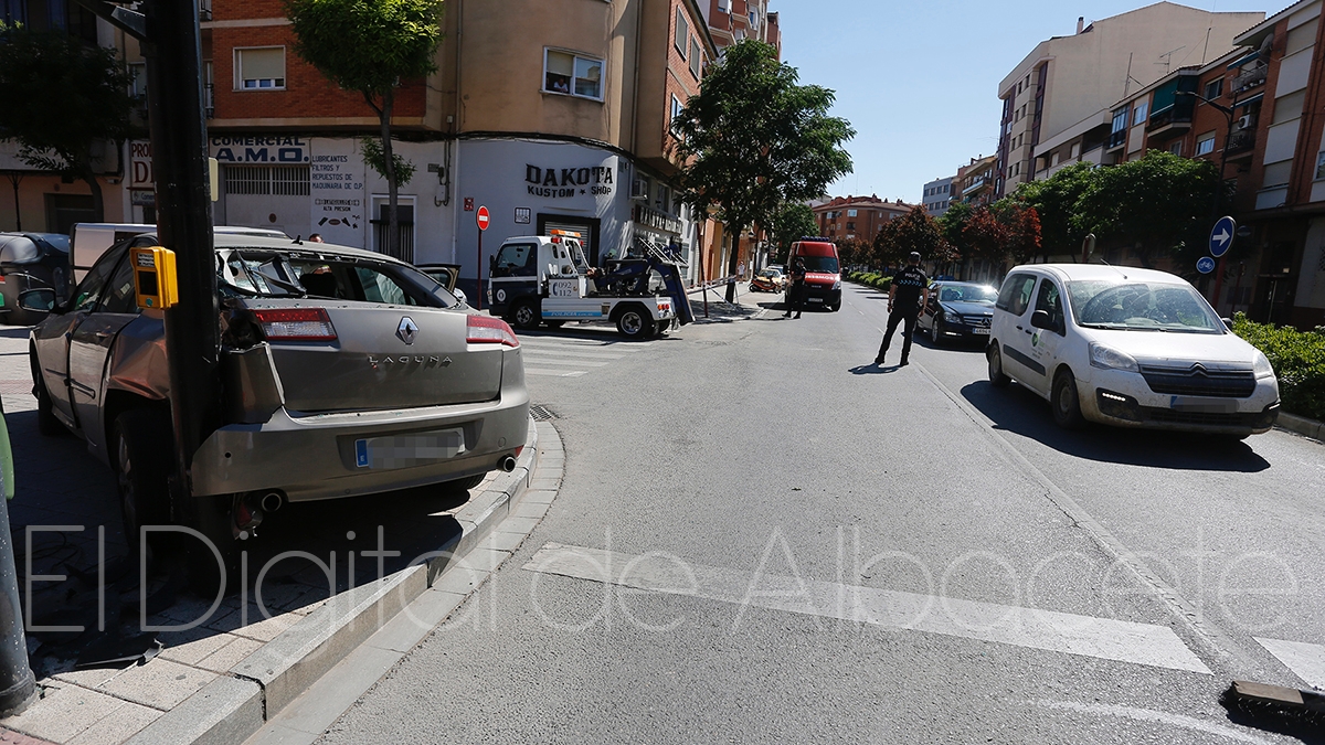 Por motivos que se encuentran bajo investigación de la unidad de atestados de la Policía Local de Albacete, el conductor de un turismo ha perdido el control del mismo y ha impactado contra varios elementos fijos de la acera, en concreto una farola, un semáforo y señales de tráfico hasta llegar a colisionar lateralmente contra otro semáforo.