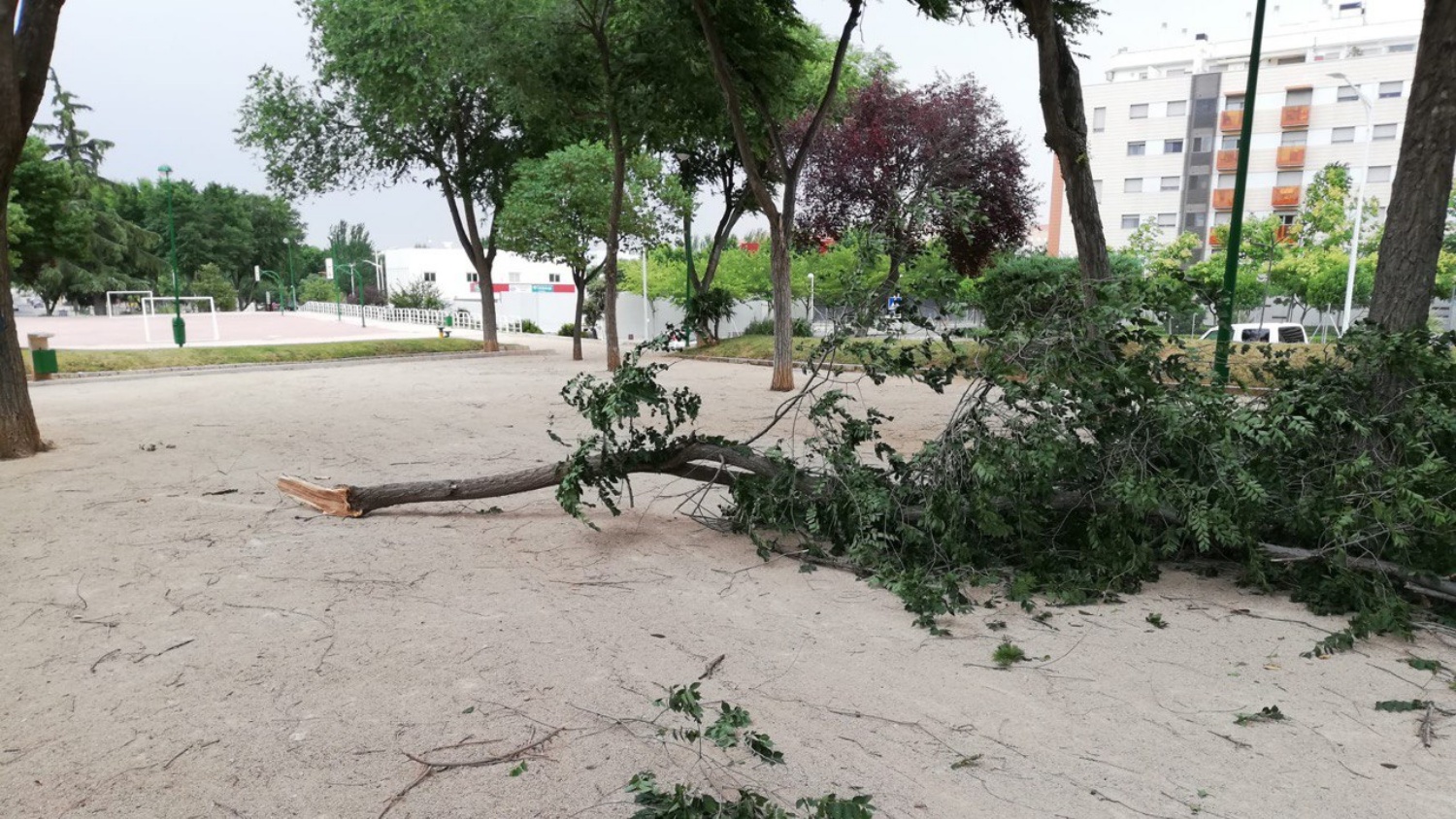 Además, en la vereda de Jaén otro árbol de grandes dimensiones caía debido a las fuertes rachas de viendo quedando tendido en el suelo de una pequeña plaza de este punto de la capital.