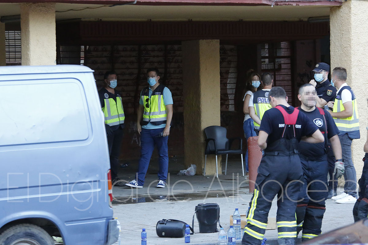 Por otro lado, cuatro heridos han sido trasladados al Hospital General Universitario de Albacete, aunque desgraciadamente una mujer ha fallecido a consecuencia del incendio en el mismo lugar y su cadáver ha tenido que ser levantado por la comitiva judicial alrededor de las 21:30. Los heridos son hombres de edades comprendidas entre los 29 y los 43 años.