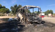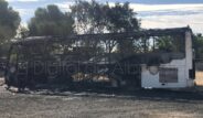 El fuego calcinó por completo un autobús de una empresa agrícola, destinado al transporte de temporeros del campo hasta su lugar de trabajo.