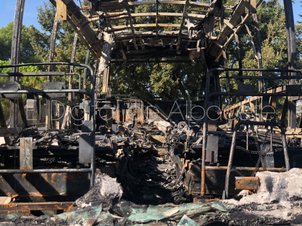 El fuego calcinó por completo un autobús de una empresa agrícola, destinado al transporte de temporeros del campo hasta su lugar de trabajo.