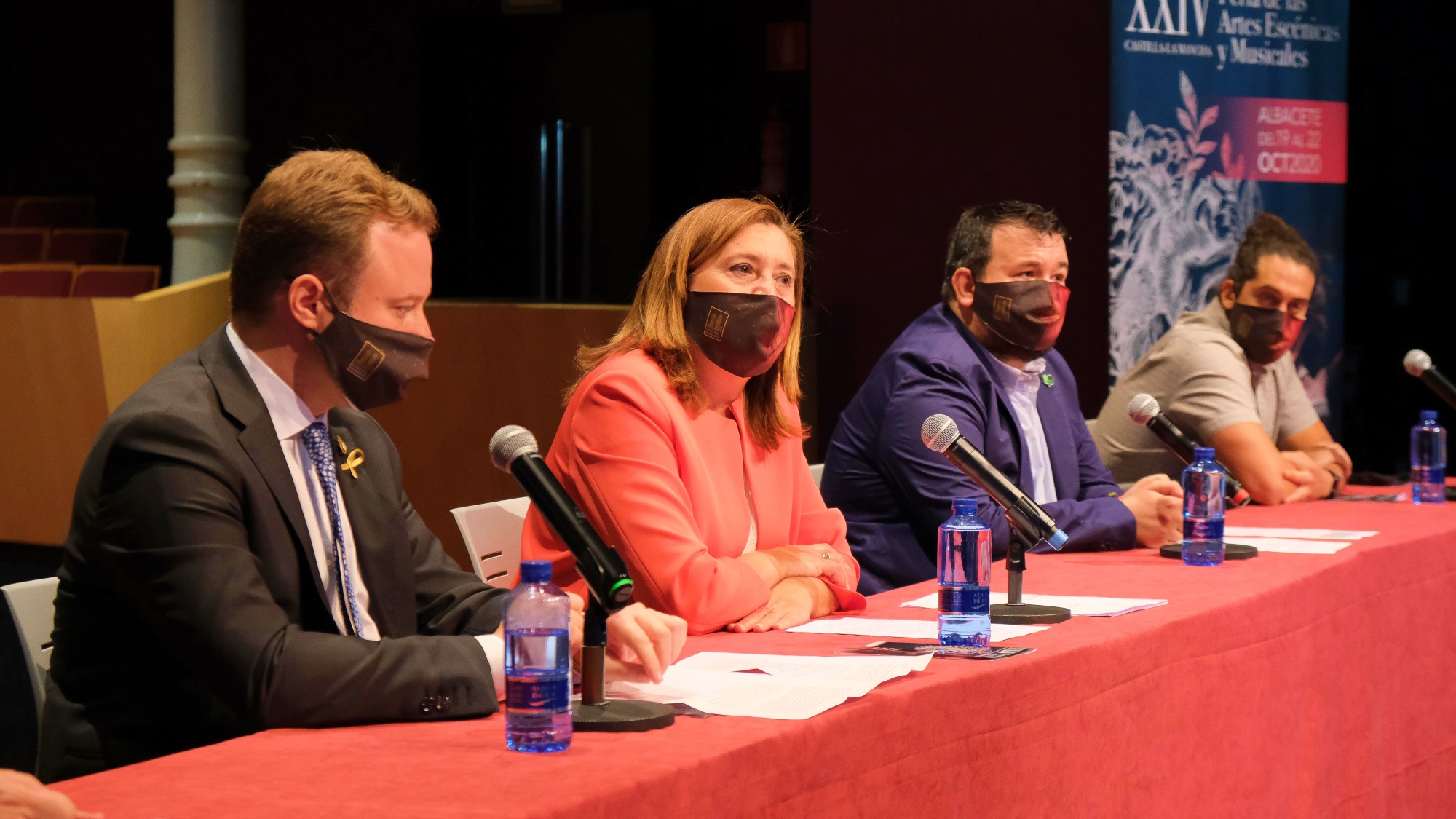 La consejera de Educación, Cultura y Deportes, Rosa Ana Rodríguez, ha presentado hoy la propuesta escénica, en una rueda de prensa celebrada en el Teatro Circo de Albacete, en la que ha estado acompañada del delegado de la Junta en la provincia, Pedro Antonio Ruiz; el vicepresidente de la diputación del Albacete, Juan Ramón Amores; el director de la Feria, Antonio Campos; y el alcalde de Albacete, Vicente Casañ.