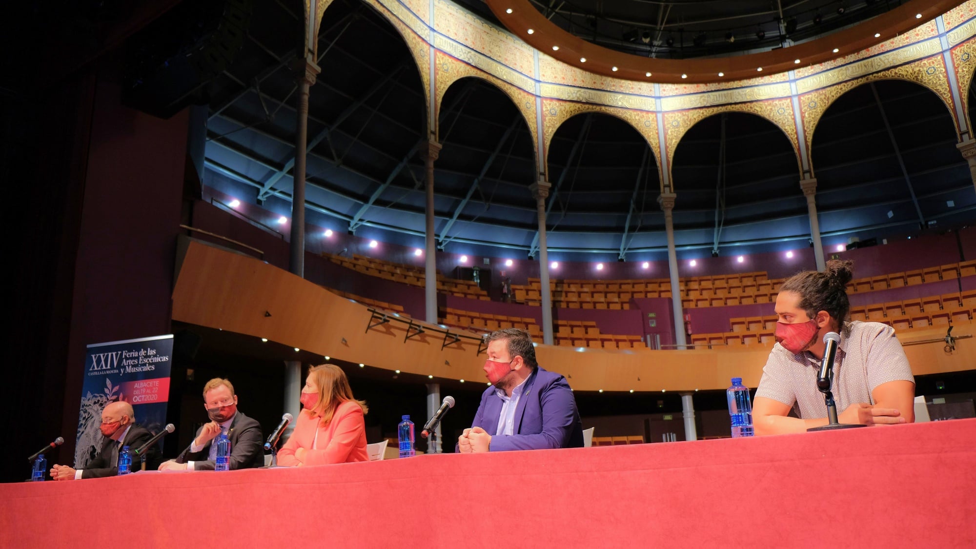 La consejera de Educación, Cultura y Deportes, Rosa Ana Rodríguez, ha presentado hoy la propuesta escénica, en una rueda de prensa celebrada en el Teatro Circo de Albacete, en la que ha estado acompañada del delegado de la Junta en la provincia, Pedro Antonio Ruiz; el vicepresidente de la diputación del Albacete, Juan Ramón Amores; el director de la Feria, Antonio Campos; y el alcalde de Albacete, Vicente Casañ.