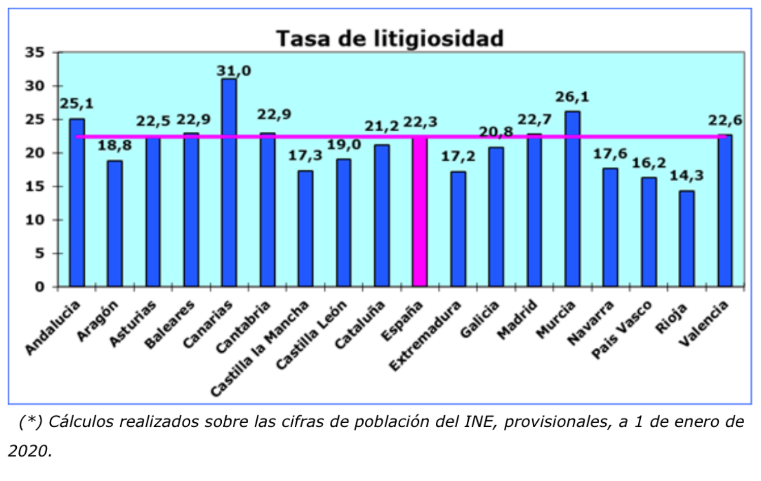 La tasa de litigiosidad en la región en el segundo trimestre del año fue de 17,3 asuntos por cada 1.000 habitantes.