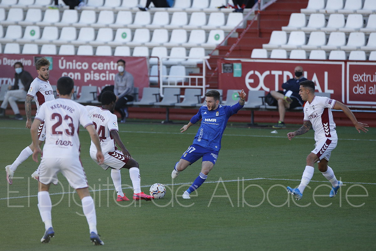 Los minutos pasaban y el Oviedo, a pesar de estar con 10 hombres, seguía siendo mucho mejor que un Albacete Balompié en el que el debutante y anhelado Diamanká todavía no se había enterado de qué iba esto llegados prácticamente al minuto 40 de la primera mitad. Pero no era solo el africano el que no carburaba, ya que después de lo visto hasta ahora, ninguno de los hombres de Alcaraz había pillado el argumento de la película en la tarde de este sábado.