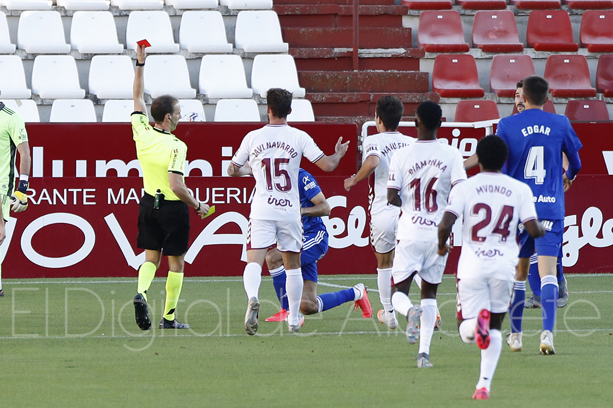 El minuto 20 pudo servir para marcar un punto de inflexión en el encuentro, ya que tras una jugada muy rápida en la que Álvaro Jiménez encaraba al portero del Real Oviedo, el autor del 0-1, Arribas, golpeó por detrás al veloz jugador del Alba y el colegiado le sacó la tarjeta roja directa y tuvo que abandonar el partido mucho antes de tiempo.