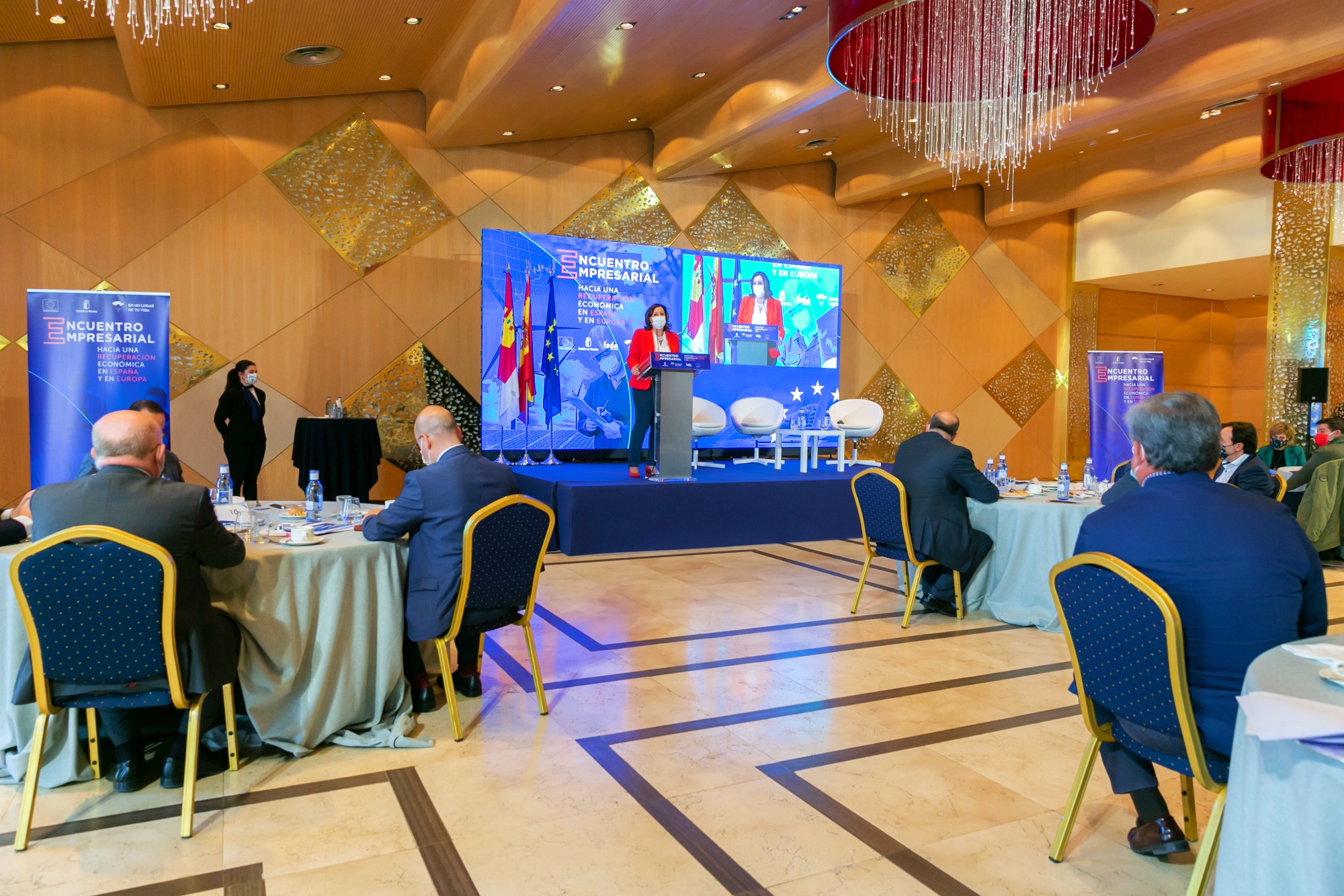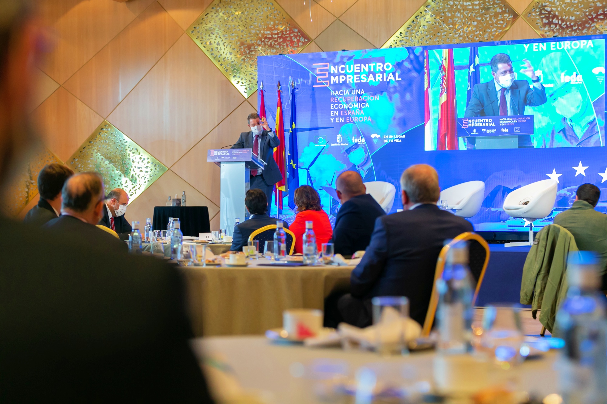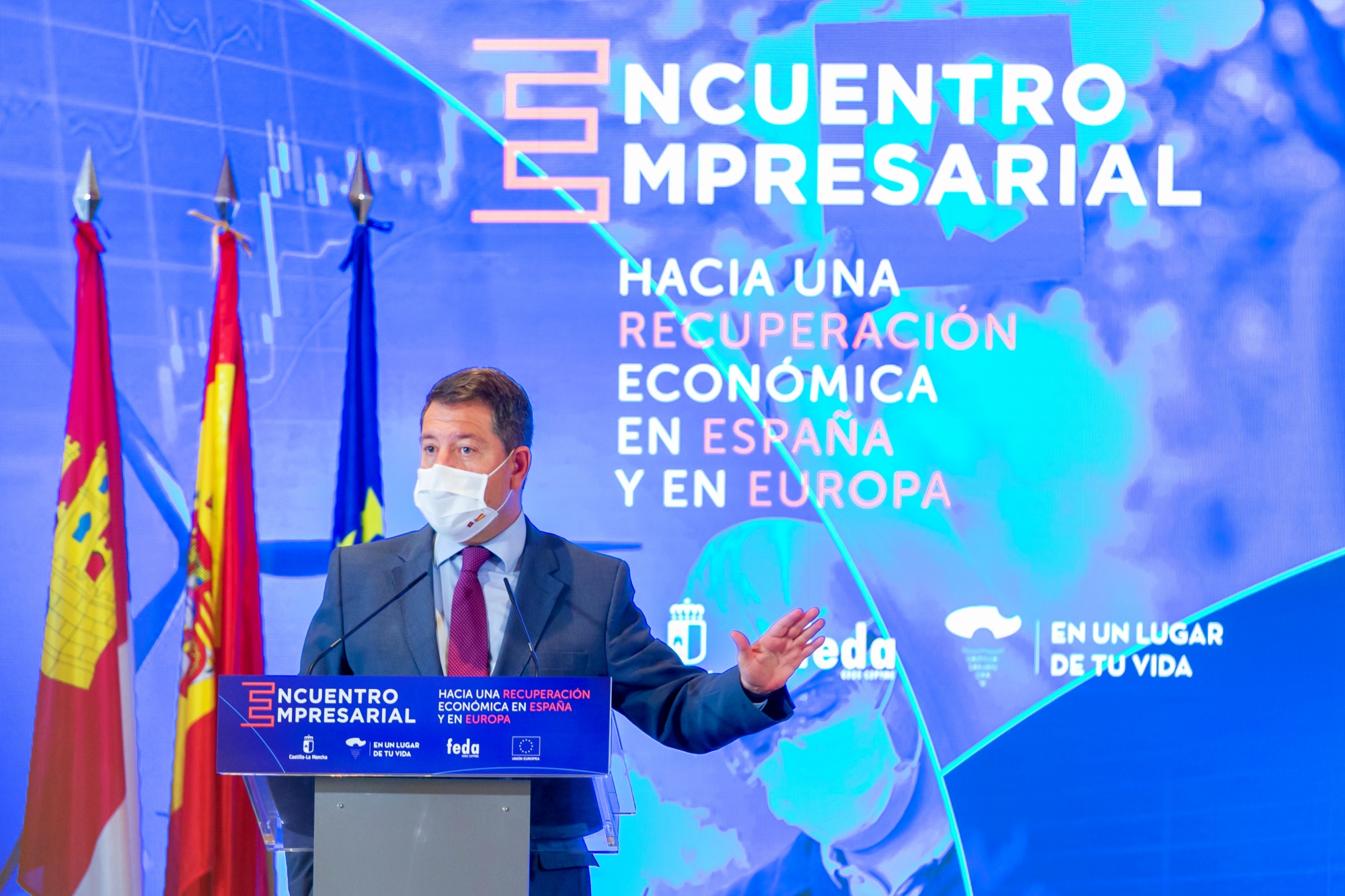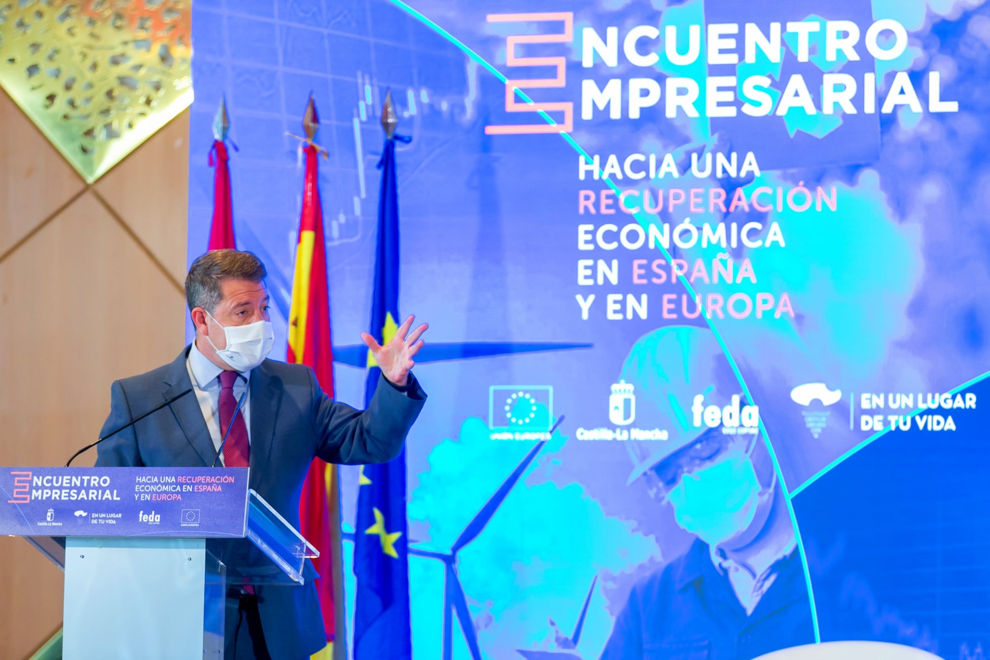 Durante este encuentro con empresarios y sindicatos albaceteños, el primero de los cinco de índole provincial que se celebrarán en las próximas fechas, para fijar los criterios de cara a una óptima distribución y aprovechamiento de los fondos europeos, el jefe del Gobierno autonómico ha estado acompañado por miembros de su Gobierno como el vicepresidente del Ejecutivo regional, José Luis Martínez Guijarro; y la consejera de Economía, Empresas y Empleo, Patricia Franco.