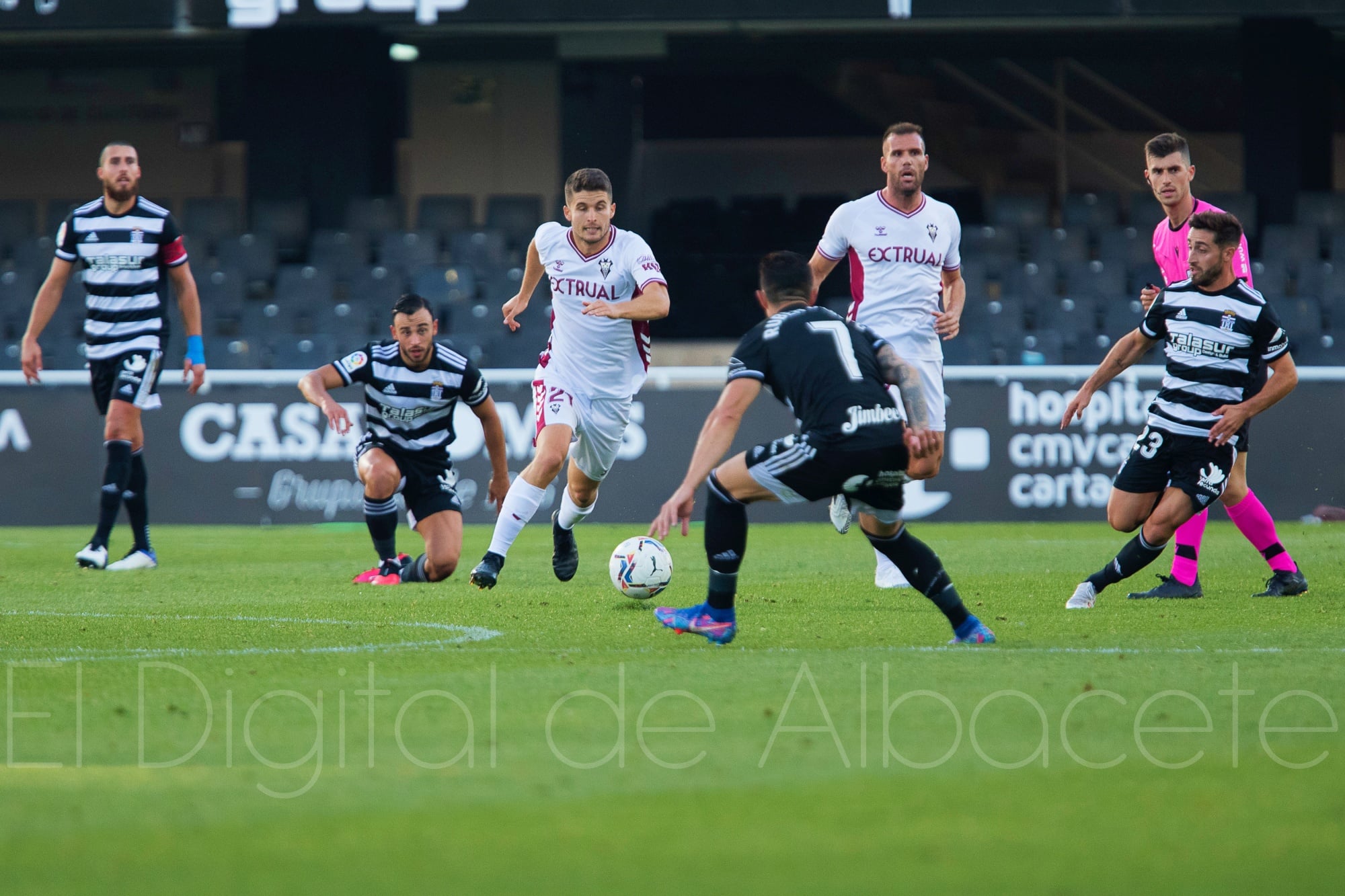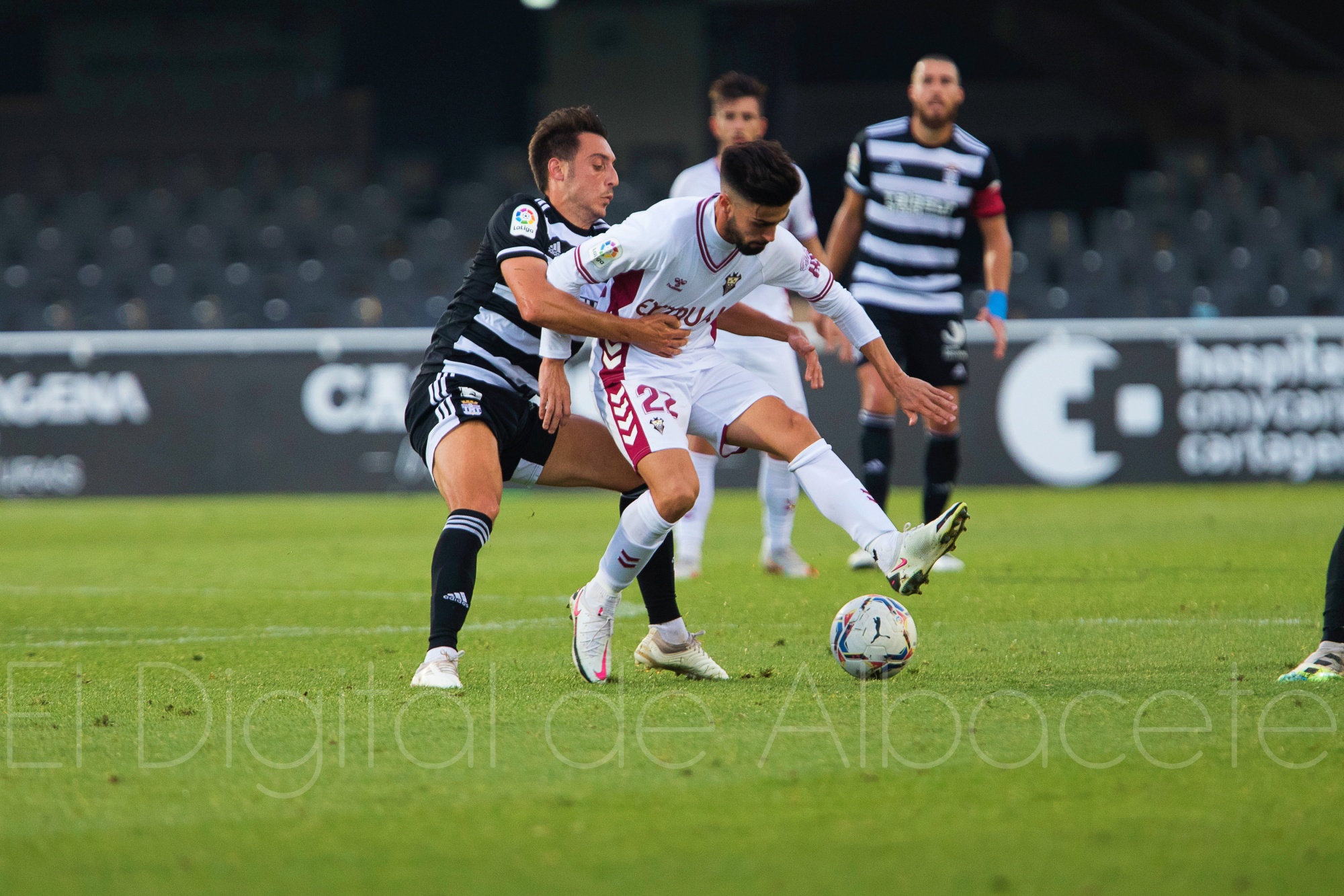 Con el 3-0 se llegó al tiempo de descanso después de una extraña primera mitad en la que la superioridad del Cartagena no fue ni total ni tanta como la que podía reflejar el marcador, pero con una fragilidad defensiva como la demostrada por el Albacete Balompié, cada vez que el Cartagena llegó a puerta con un mínimo de claridad consiguió anotar gol y asestar un mazazo al conjunto manchego.