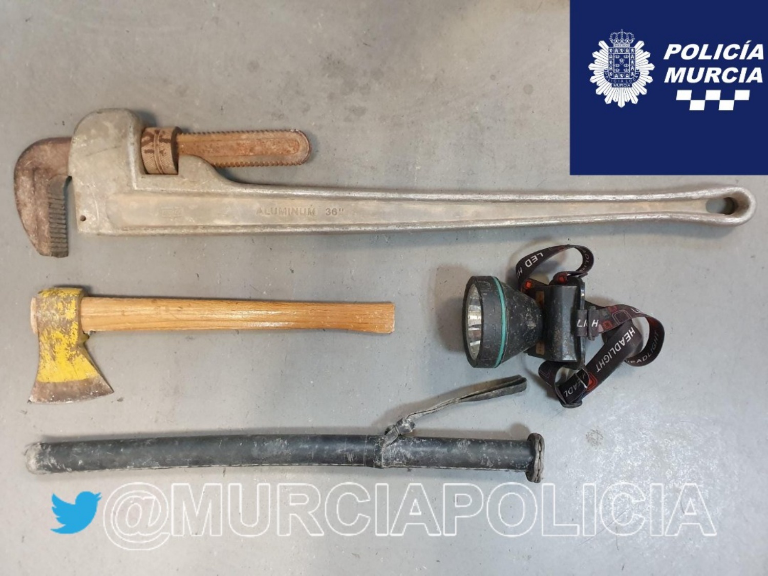 En concreto los robos en los que presuntamente está implicado el detenido se produjeron durante los días 25 y 31 de octubre. Los agentes que procedieron a su detención intervinieron los utensilios que portaba en ese mismo instante. En concreto, según muestran las imágenes difundidas por la Policía Local de Murcia el detenido llevaba consigo un machete y una porra entre otros objetos.