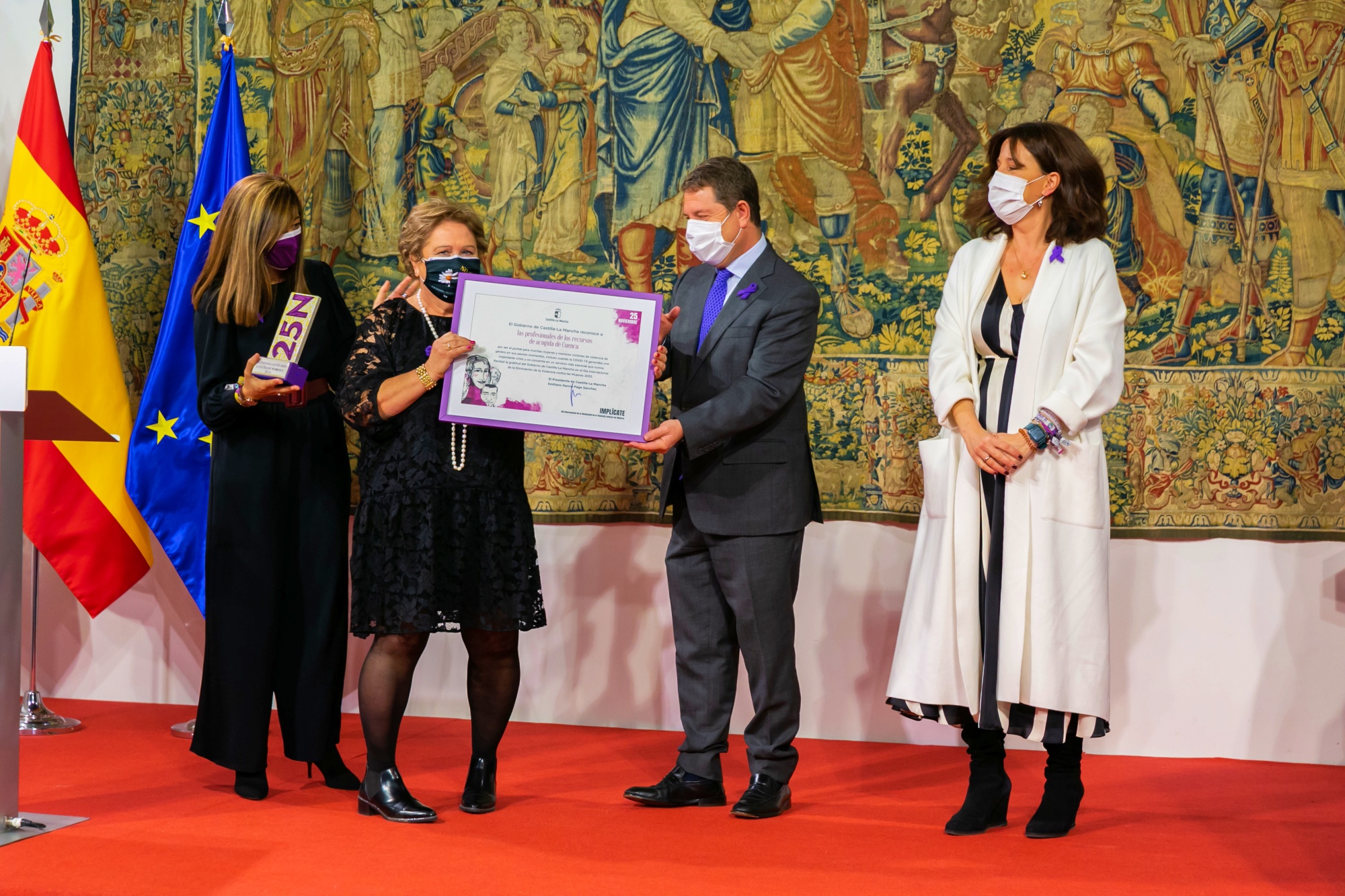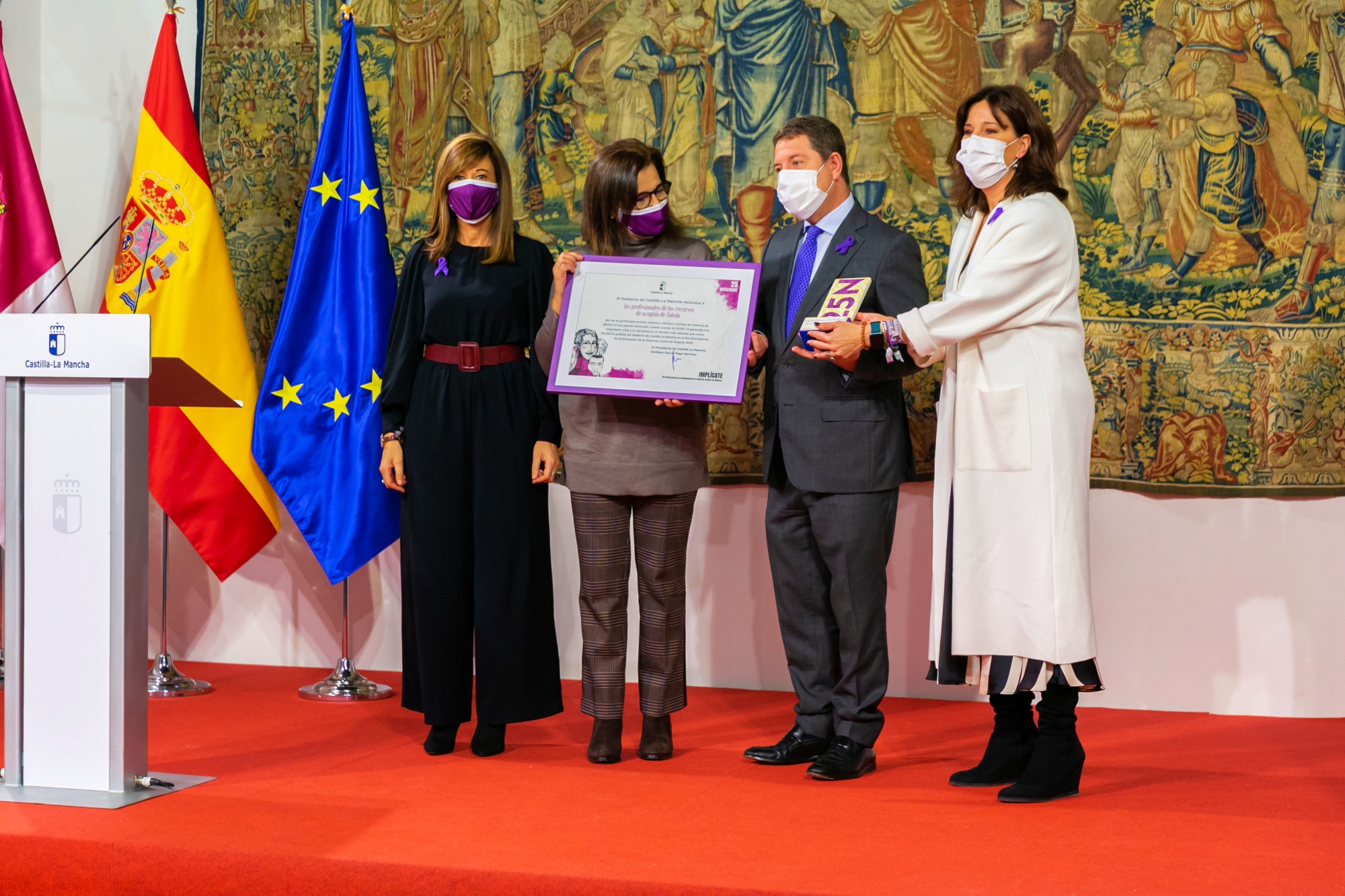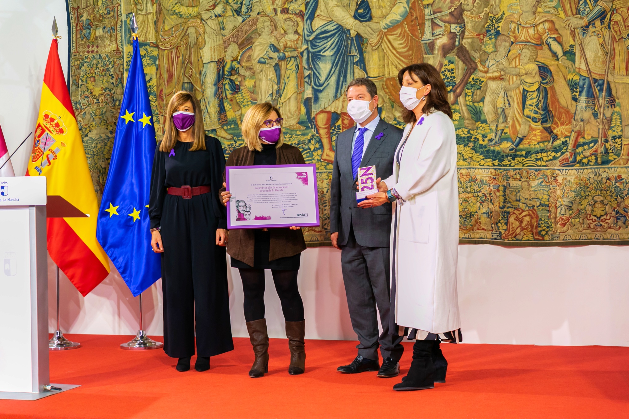 En este acto institucional promovido por la Junta de Comunidades de Castilla-La Mancha, el presidente García-Page ha estado acompañado por la consejera de Igualdad y Portavoz del Ejecutivo autonómico, Blanca Fernández, así como por la directora del Instituto de la Mujer, Pilar Callado, que han hecho entrega de cinco reconocimientos, uno por cada provincia, a otras tantas profesionales de algunos de los quince Centros de Acogida que conforman esta red de recursos de acogida en la Comunidad Autónoma.
