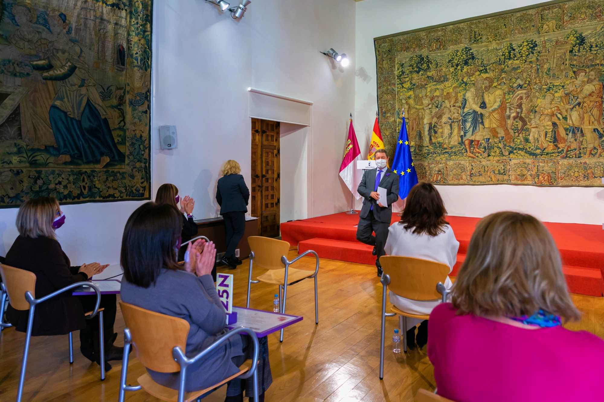 Así lo ha señalado el presidente regional en el acto institucional con motivo del Día Internacional para la Eliminación de la Violencia contra las Mujeres, que se ha celebrado en el Palacio de Fuensalida, en el que se ha reconocido la incesante labor de las y los profesionales de los quince Centros de Acogida que, distribuidos por la Comunidad Autónoma, atienden las necesidades de las mujeres víctimas de la violencia de género, así como las de sus hijas e hijos.