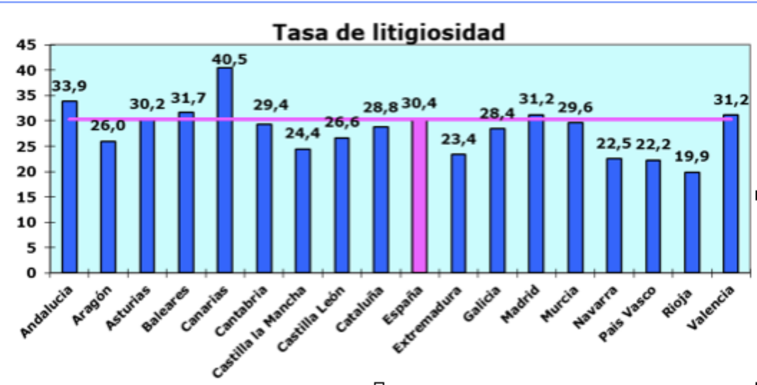 La tasa de litigiosidad en la región en el tercer trimestre del año fue de 24,4 asuntos por cada 1.000 habitantes.