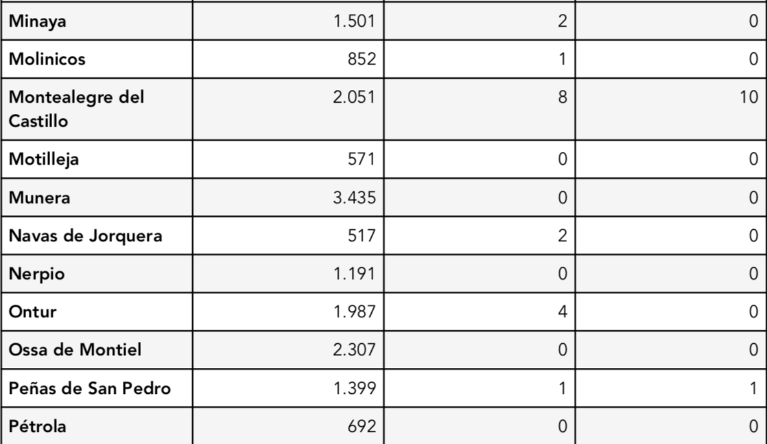 La Consejería de Sanidad de Castilla-La Mancha ofrece desde el jueves, 3 de septiembre, la información relacionada con la evolución del COVID-19 en los municipios de la provincia de Albacete con una población de más de 1.000 habitantes. Además, desde la semana pasada también se ofrecen los datos de incidencia del virus en localidades de 500 habitantes.