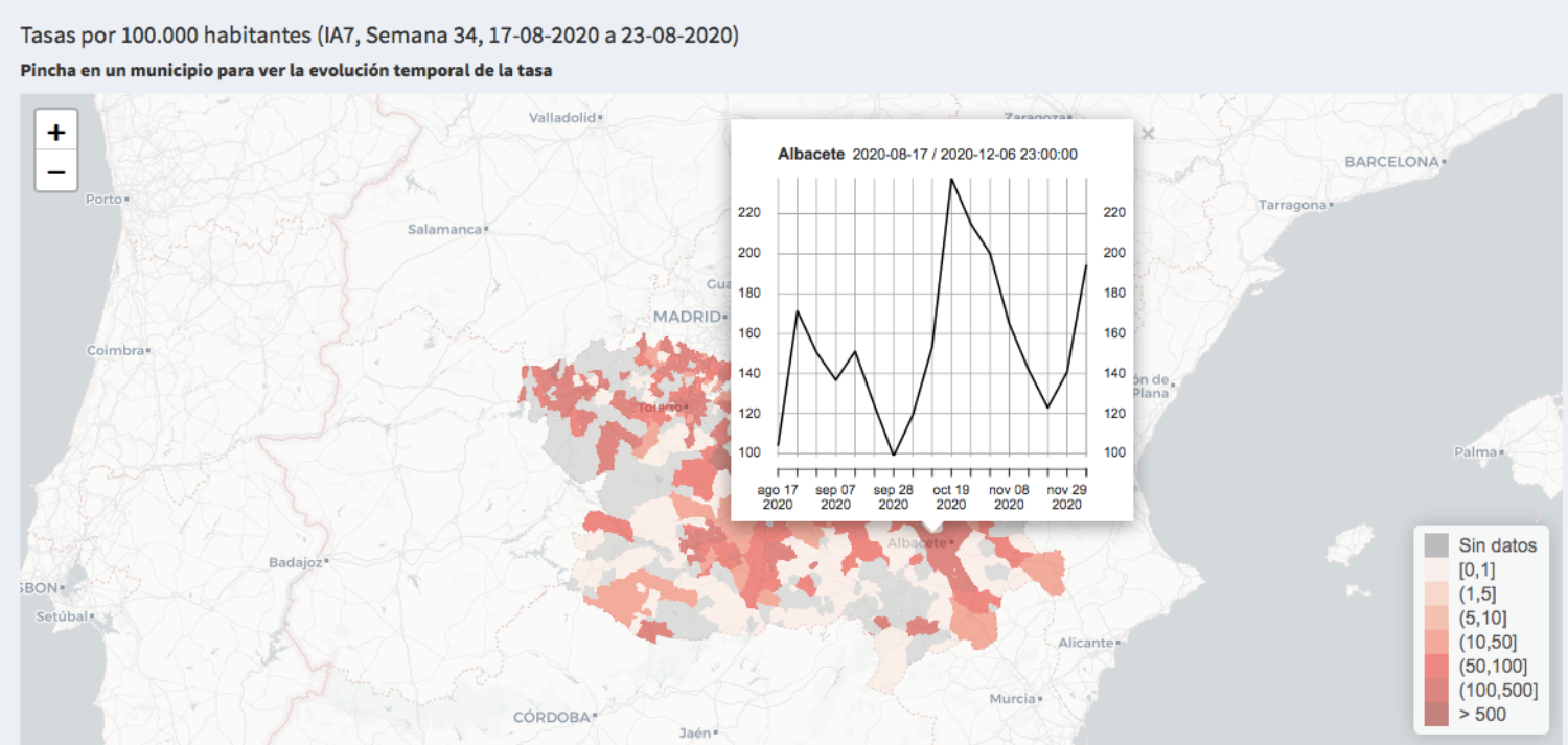 La Consejería de Sanidad de Castilla-La Mancha ofrece desde el mes de septiembre, la información relacionada con la evolución del COVID-19 en los municipios de la provincia de Albacete con una población de más de 1.000 habitantes. Además, también se ofrecen los datos de incidencia del virus en localidades de 500 habitantes.