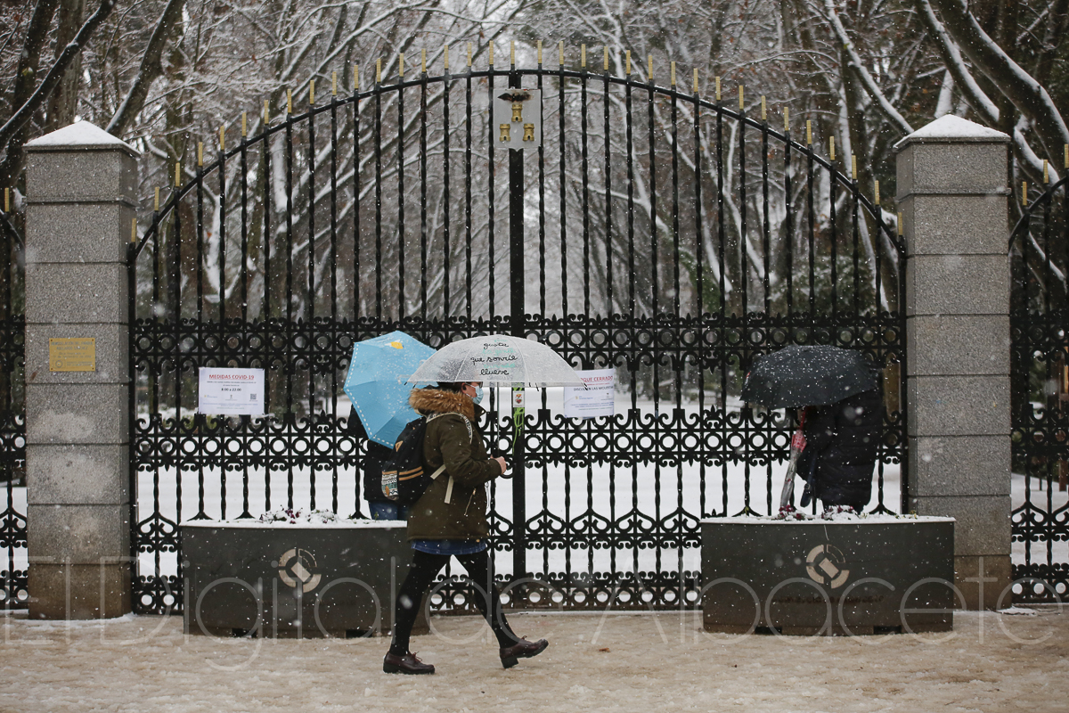 Durante la madrugada la caída de nieve ha arreciado y con las primeras luces del alba se puede apreciar que el manto blanco que cubre calles y parques es cada vez más espesa.