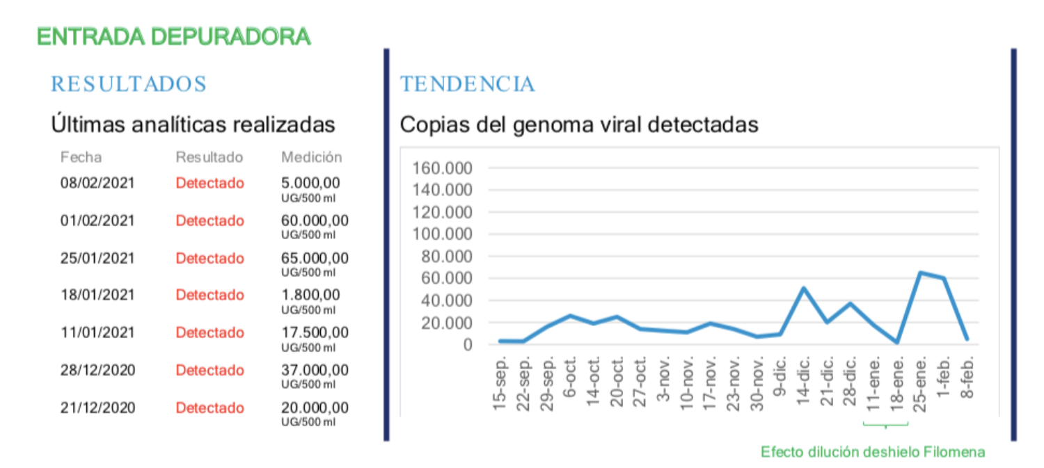 El agua residual es un factor determinante para la detección de posibles rebrotes ya que, aunque el virus no es viable en las mismas, sí es detectable y cuantificable puesto que su máxima concentración se produce en las excreciones de las personas portadores durante la fase de incubación; tanto asintomáticas como las que posteriormente manifiesten la enfermedad.
