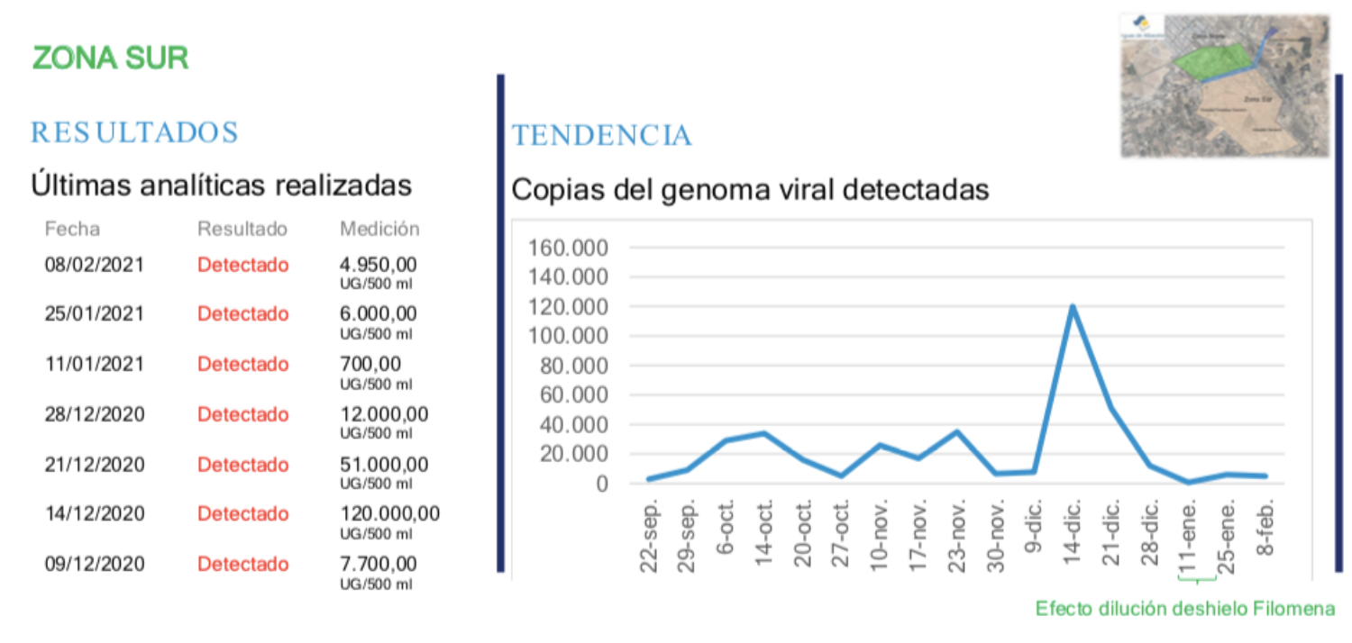 En los últimos análisis realizados por sectores el pasado 25 de enero se comenzaba a vislumbrar un descenso de la presencia del virus en las aguas residuales de la zona sur de Albacete capital. En concreto esta medición arrojaba que esta cifra era de 6.000 unidades genómicas por 500 mililitros.