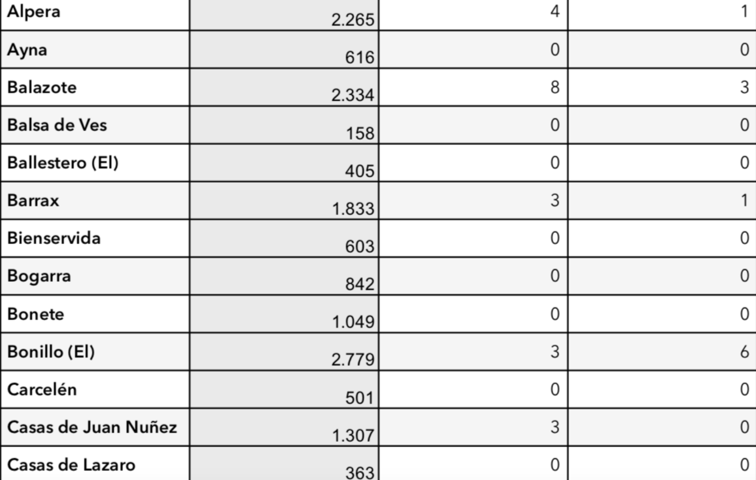 Por contraposición, salían a la luz en en El Bonillo 6 casos duplicándose esta cifra. Además, también aumentaba el número de nuevos contagios en Montealegre del Castillo, Valdeganca y Pozo Cañada registrándose 4 casos en cada uno de estos municipios de la provincia de Albacete entre el 5 y el 21 de febrero.