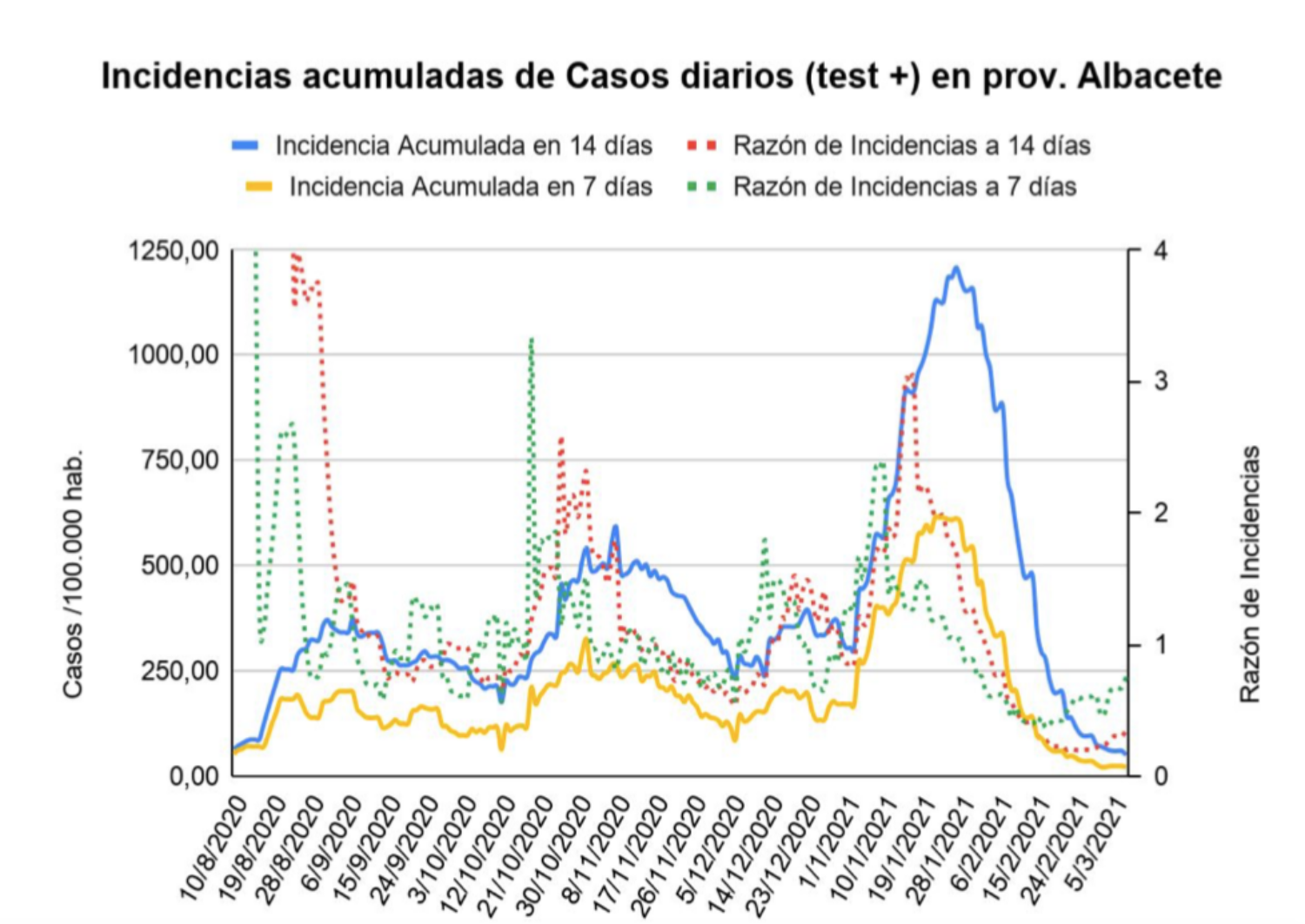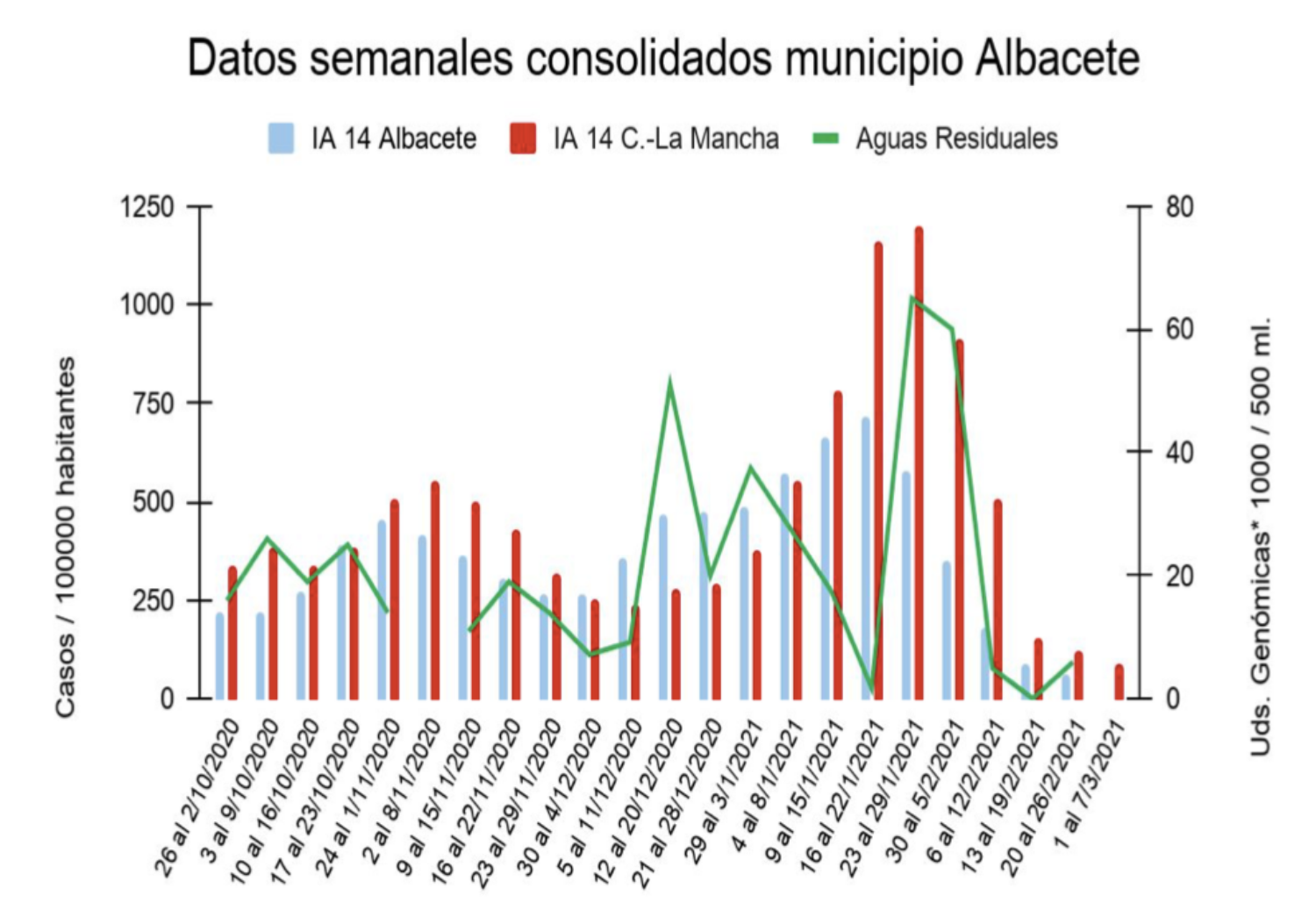 Esta estabilización del descenso de contagios unida al incremento de detección de la presencia del virus en las aguas residuales de Albacete capital “nos debe poner en aviso de un posible cambio de tendencia que no sería descartable tras la relajación de las medidas de viabilidad social desde el 20 de febrero”.