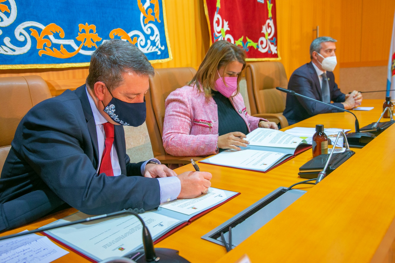 Durante esta rúbrica, en el Ayuntamiento talaverano, el presidente regional ha estado acompañado por la consejera de Bienestar Social, Aurelia Sánchez; el delegado de la Junta en la provincia de Toledo, Javier Úbeda; el presidente de la Diputación Provincial de Toledo, Álvaro Gutiérrez; y alcaldesa de Talavera de la Reina, Tita García Élez.