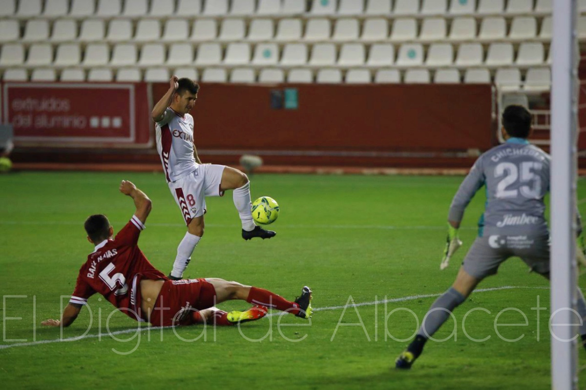 El Alba vivía ahora sus mejores minutos y dominaba todas las facetas del juego ante un noqueado Cartagena, que estaba sufriendo mucho para taponar el juego directo del Albacete Balompié y lo incisivo de un Álvaro Jiménez que está un peldaño por encima del resto de su equipo y que cada vez que cogía el balón generaba peligro de cara al marco contrario.