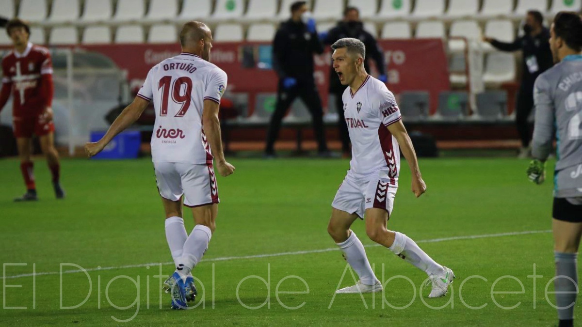 Con una falta de gol alarmante durante toda la temporada, cada jugada a balón parado es oro para el Albacete Balompié y este lunes quedó patente en el Carlos Belmonte en el minuto 21, cuando de la nada Álvaro Jiménez consiguió rascar una falta que el mismo botó poniendo un centro de dulce a la cabeza de un Alfredo Ortuño que se reencontraba de nuevo con el gol, y que perforaba con un buen testarazo la portería del Cartagena para poner el 1-0 y desatar la alegría en la familia albacetista.