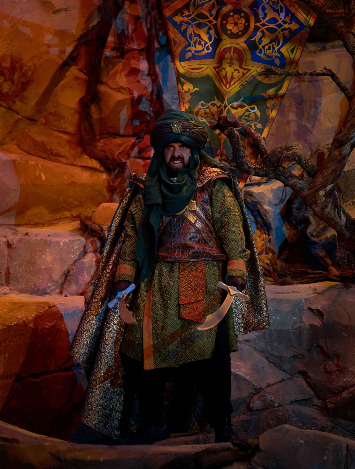 La historia se desarrolla en el campamento califal y las aves tienen todo el protagonismo y, además de llenar el cielo con todos los ejemplares en la parte final, incluso bailan al son de la música y bajo las órdenes de la Academia de Cetrería de Puy du Fou España.