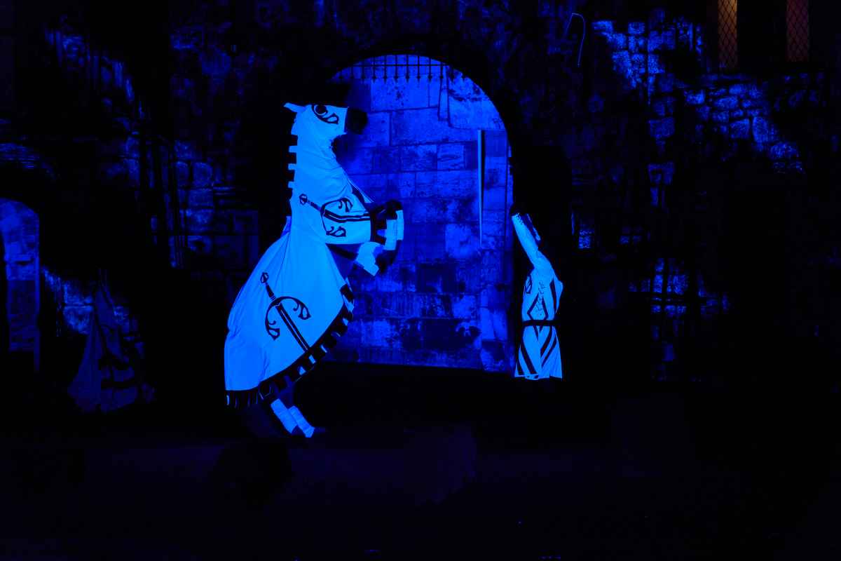 El joven Rodrigo, el Cid Campeador, inicia otro de los espectáculos en auditorio que lleva por título ‘El último cantar’ y muestra al público, en unas gradas circulares móviles, las distintas partes de su vida, desde que empieza a domar a su caballo Babieca, pasando por sus andanzas para ganarse el amor de Jimena y para conquistar territorios -con pasajes también en Toledo- hasta su muerte y la supervivencia de su leyenda.
