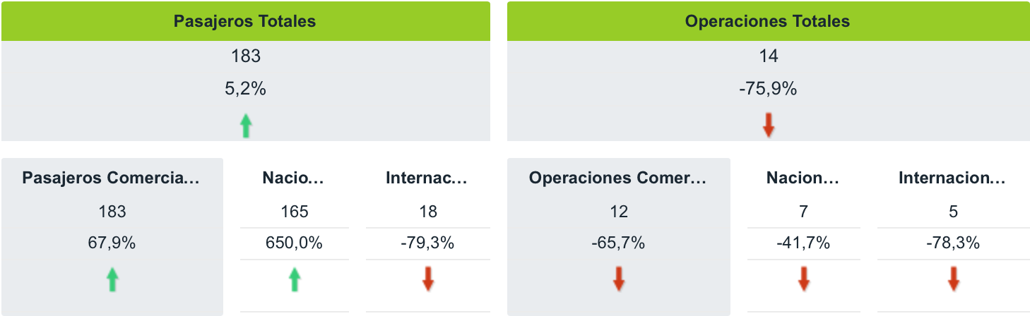 Por meses, en enero el aeropuerto albaceteño registraba un total de 183 pasajeros, todos comerciales (165 nacionales y 18 internacionales); así como 14 operaciones, de las cuales 12 fueron comerciales (7 nacionales y 5 internacionales).