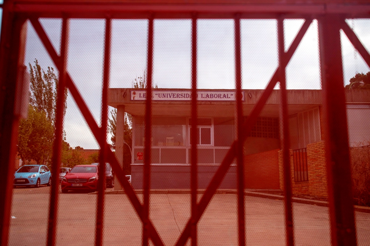 Todos los rostros estaban tristes esta mañana en el IES Universidad Laboral, donde a las 09:30 horas han sonado las sirenas al inicio y al final de un minuto de silencio que ha guardado toda la comunidad educativa, en cada aula, incluidos los alumnos de Formación Profesional Básica de los que el docente fallecido era tutor.