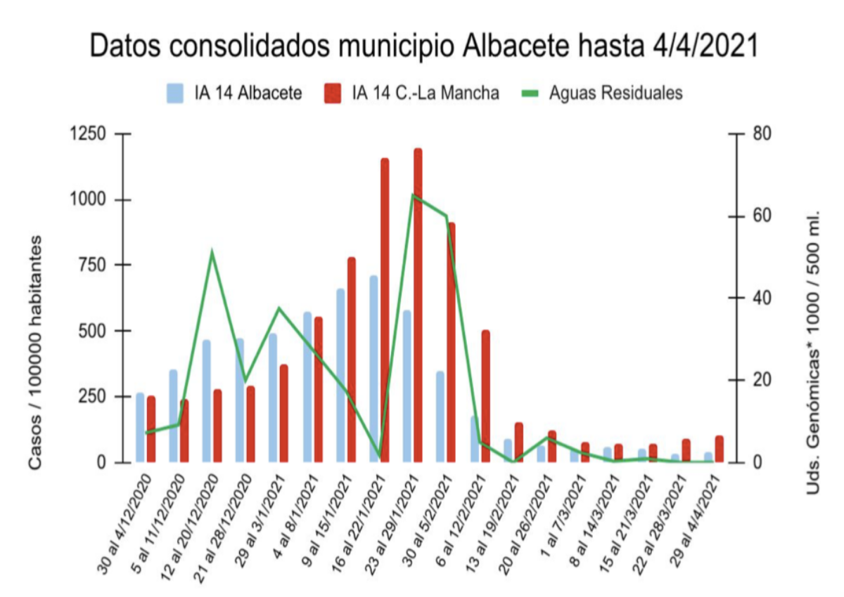 Del mismo modo puntualizaban que la actualización vírica en aguas residuales “no adelantaba el ascenso de casos que se ha visto en la provincia de Albacete durante la semana pasada”. Sostenían que “queda reflejado el cambio de tendencia, sin reflejar aún el efecto de la Semana Santa”.