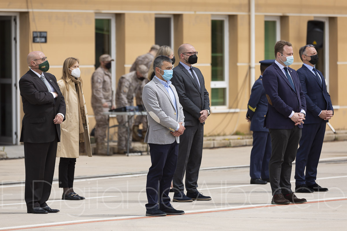 Del mismo modo también dedicaba palabras a los familiares de todo el personal del Ala-14 que pasará 4 meses alejados de sus hogares en Albacete. “Esta misión es un esfuerzo importante para el Ejército del Aire, para el Ala-14, pero también para nuestras familias porque dejamos de forma temporal atrás todos aquellos lazos que nos unen y a las personas que nos apoyan día a día”. Así reconocía que “nuestras familias saben mejor que nadie cuáles son las renuncias y sacrificios a los que tenemos que hacer frente a lo largo de la carrera militar, pero siempre nos apoyan”.