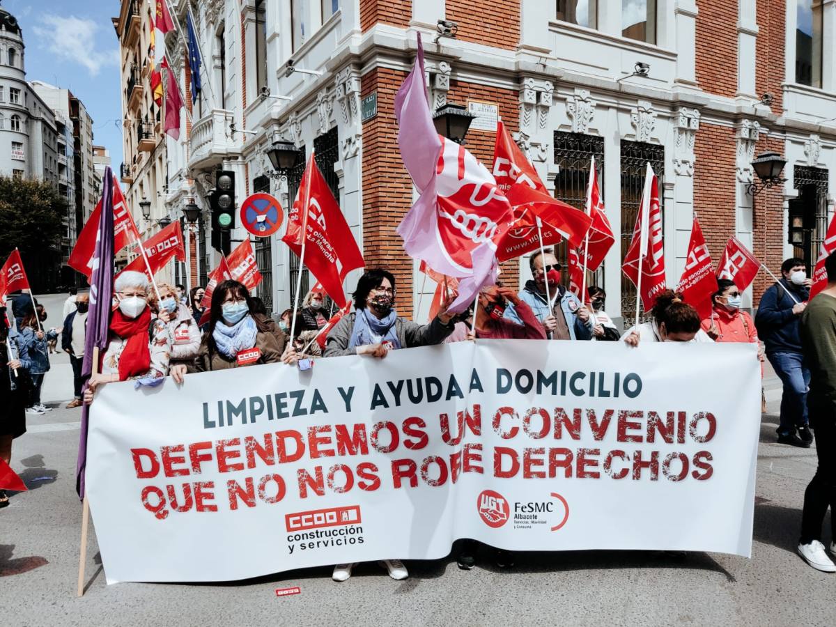 Junto a las pancartas con el lema principal de la jornada reivindicativa, también se han visto otras, como la que pedía «un convenio que no nos robe derechos» para las trabajadoras de los servicios de limpieza y ayuda a domicilio.